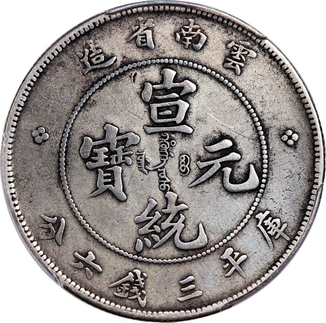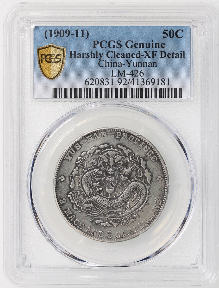 Yunnan Province, silver 50 cents, Xuantong Yuan Bao, old dragon, (LM-426), PCGS XF detail, harshly cleaned.
