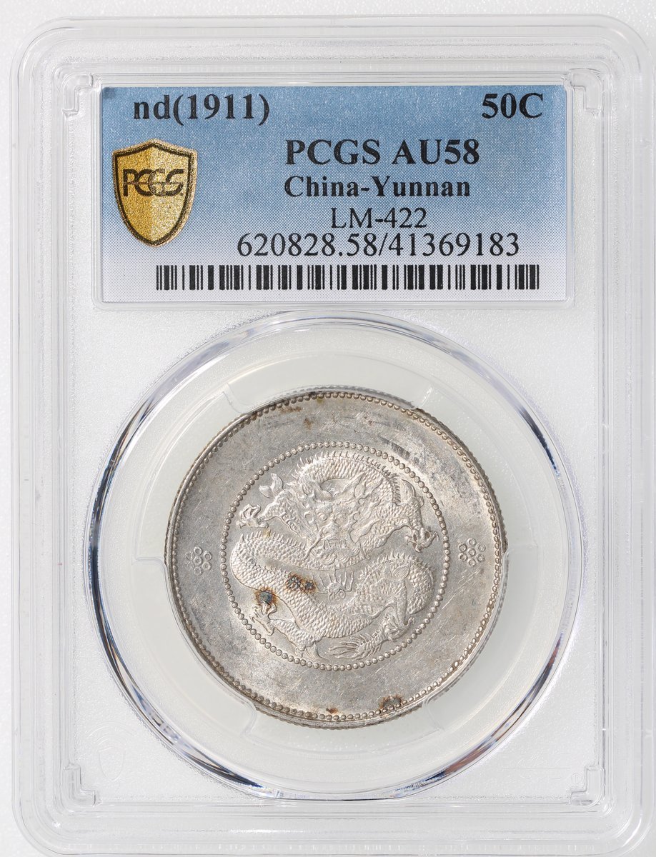 Yunnan Province, silver 50 cents, Guangxu Yuan Bao, new dragon, (LM-422), PCGS AU 58.