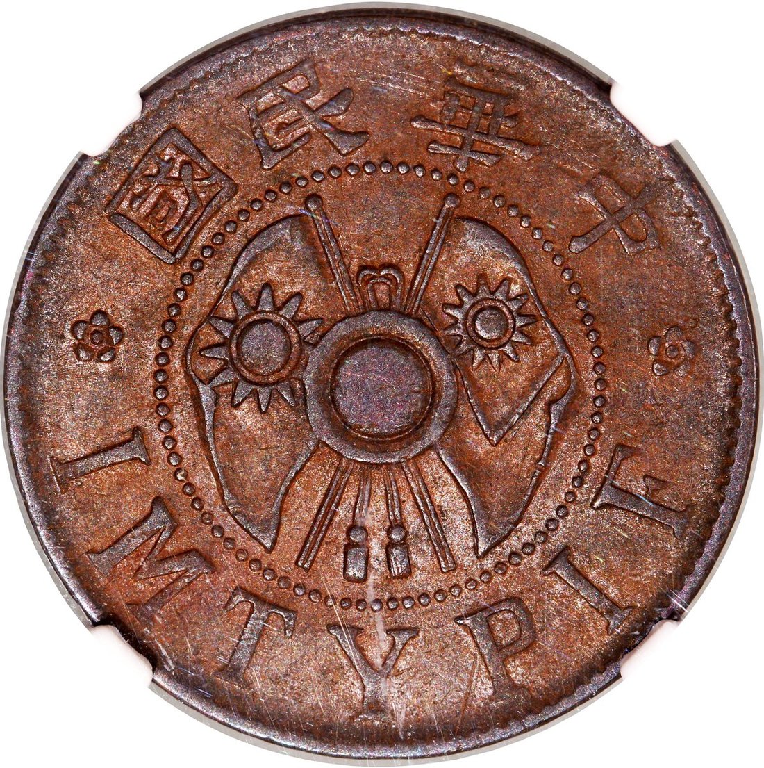 Shensi Province, copper 1 fen, 1928, crossed flags at obverse, NGC AU53BN