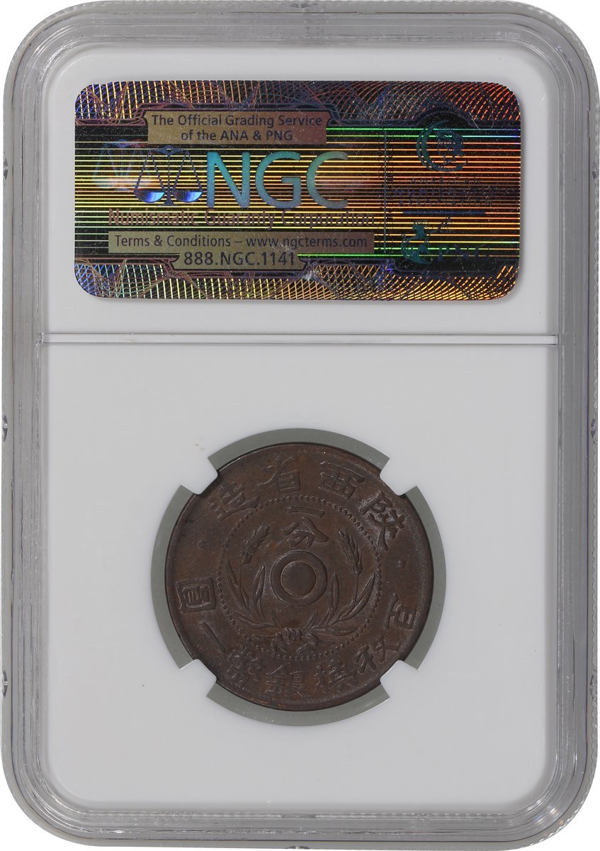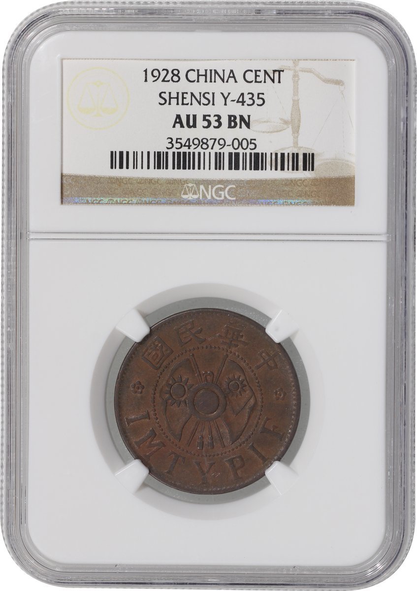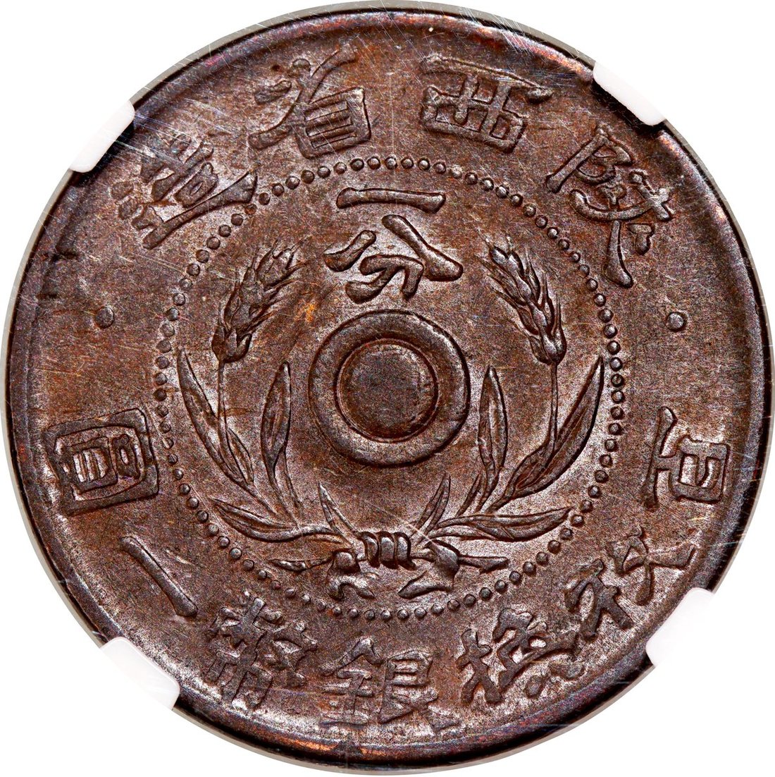 民國十七年陝西省造1分銅幣,NGC AU53BN