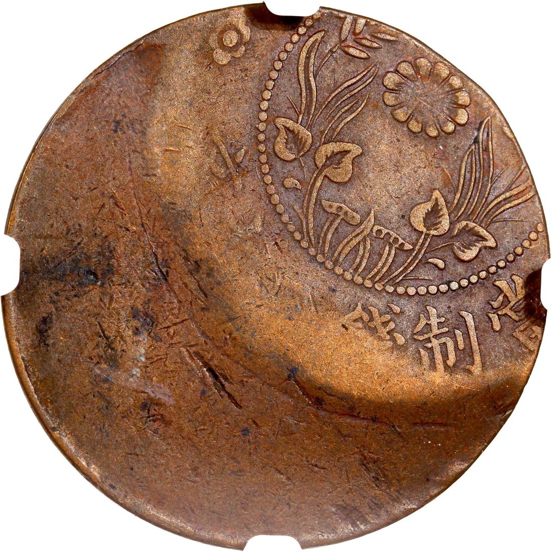 Honan Province, copper 20 cash, 1920, MINT ERROR, struck 40% off centre, NGC VF35BN
