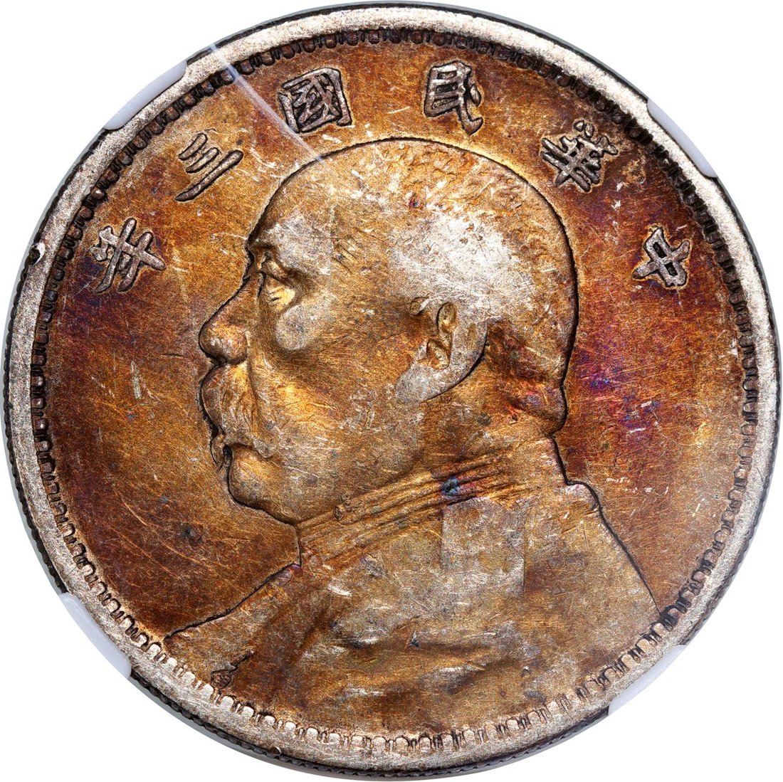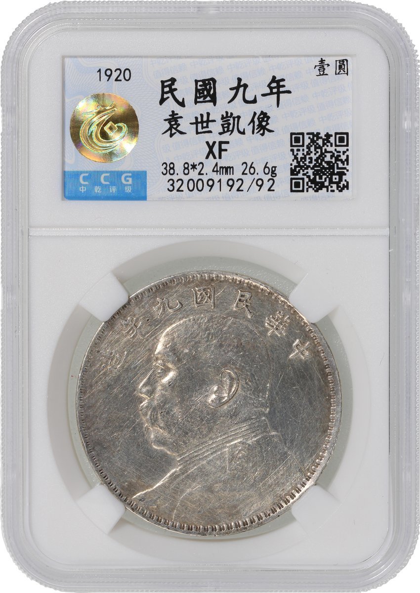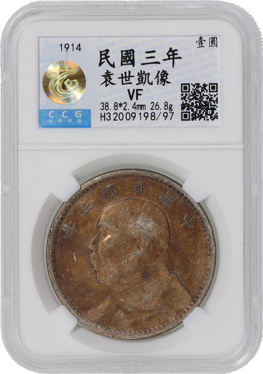 民國三年及十年袁世凱像銀元一對,分別中乾VF及XF,前者有包漿