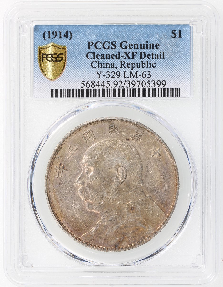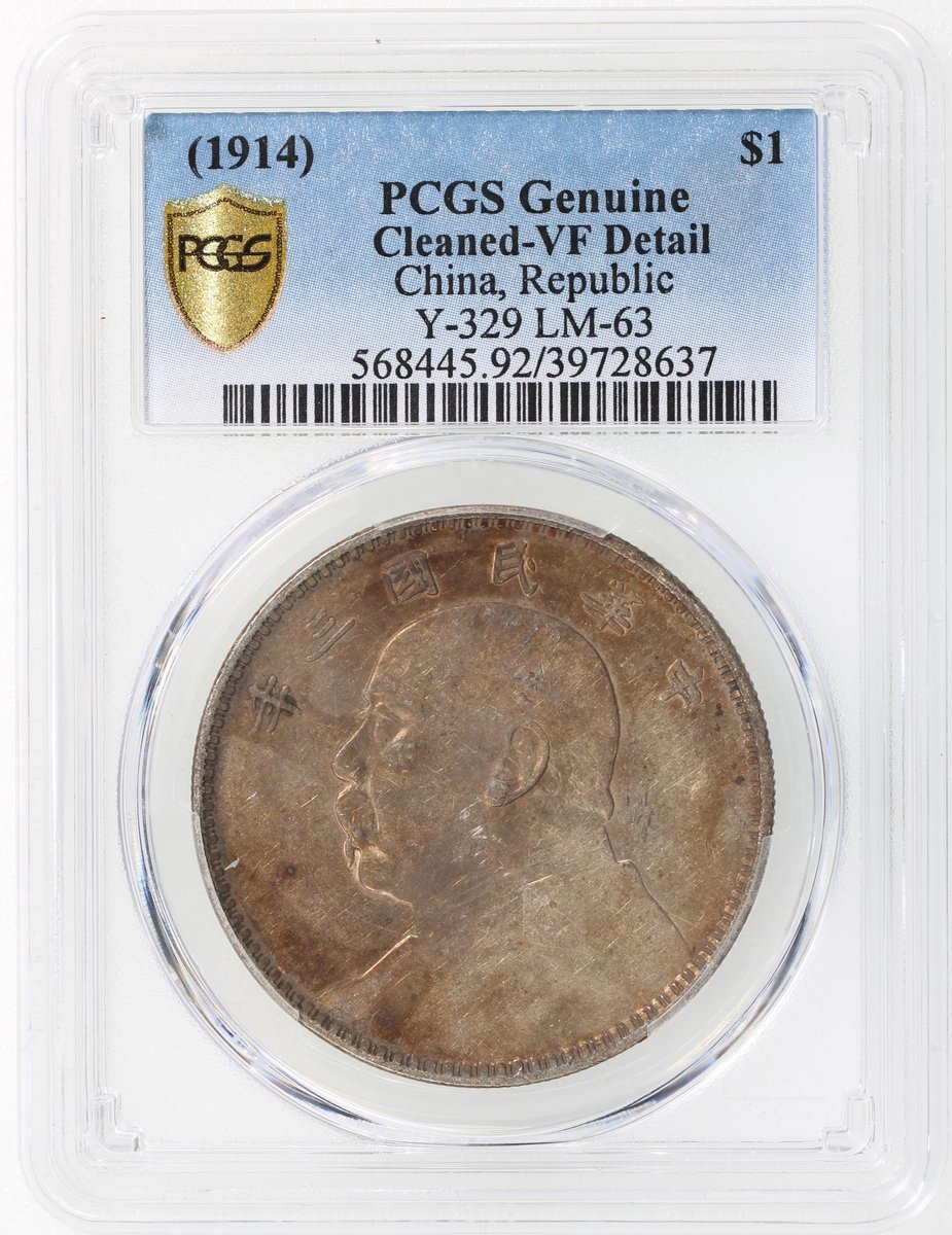 Republic of China, lot of 2 silver Fatman dollars, 1914, (Y-329, LM-63), PCGS VF Detail (Cleaned) and XF Detail (Cleaned), 2 coins