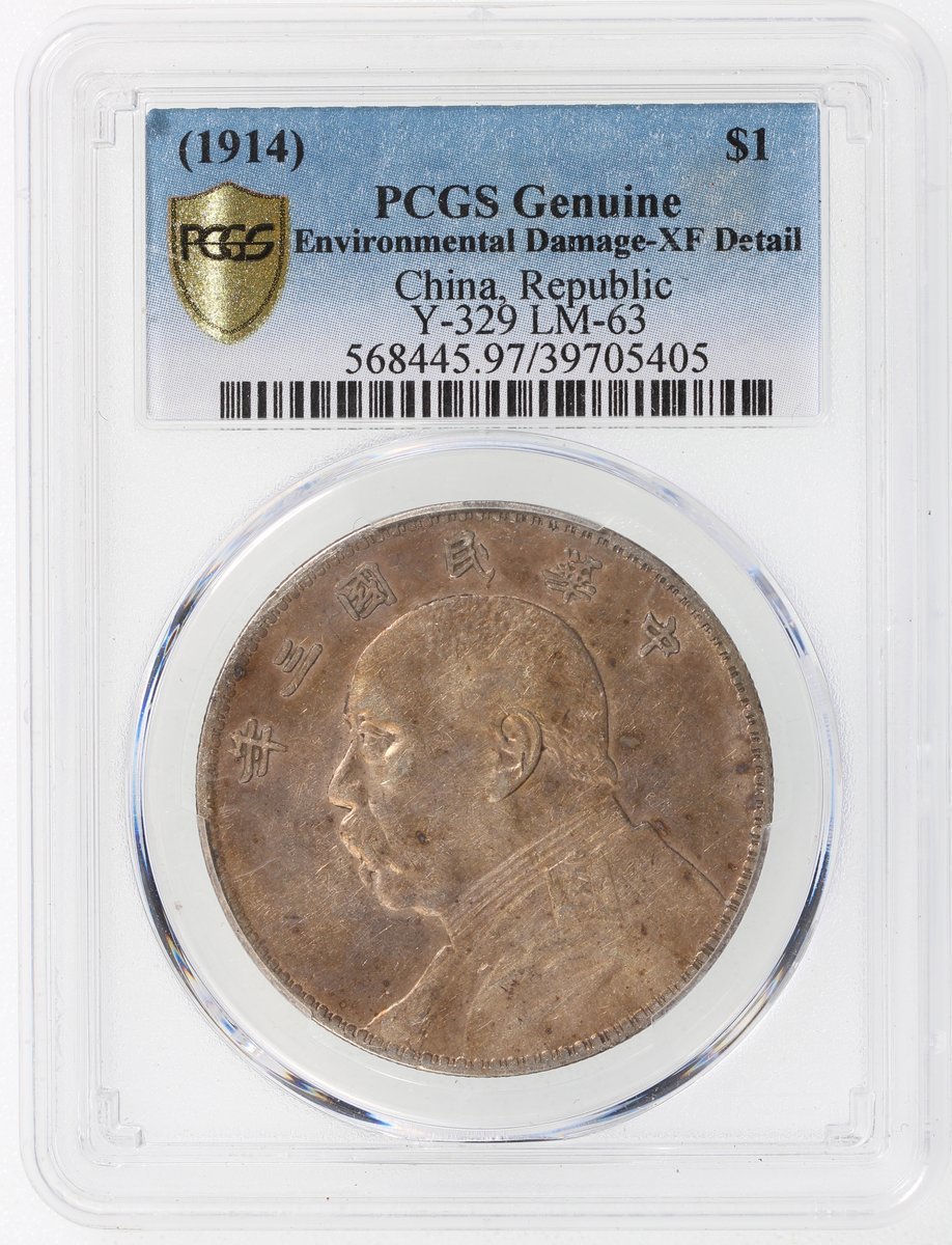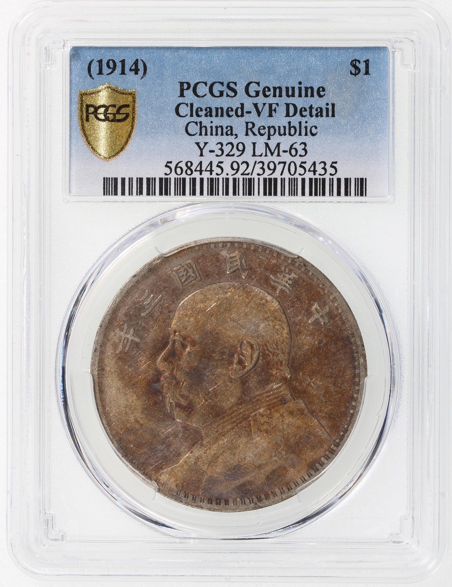 Republic of China, lot of 2 silver Fatman dollars, 1914, (Y-329, LM-63), PCGS VF Detail (Cleaned) and XF Detail (Environmental Damage), 2 coins