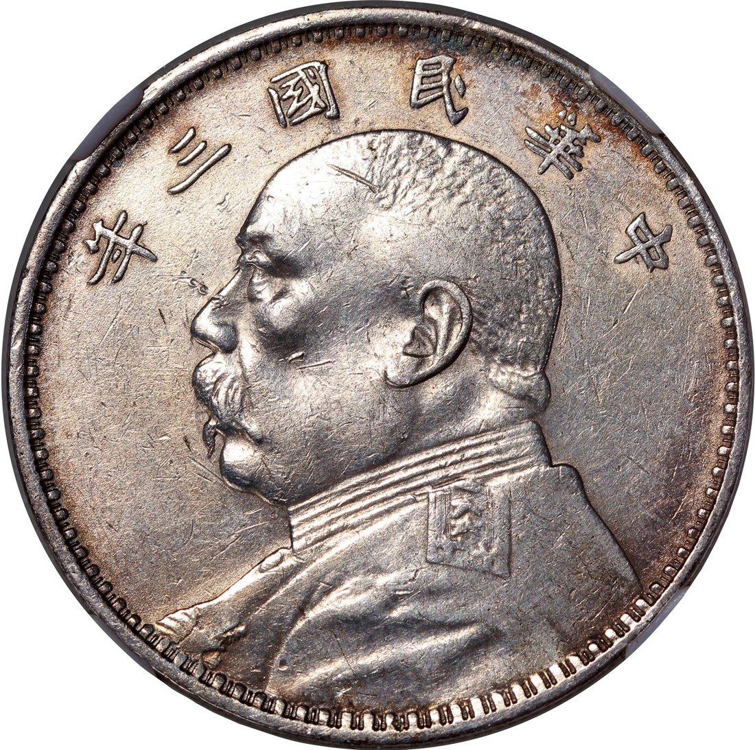 民國三年袁世凱像銀元,及開國紀念銀幣,無日期,均評中乾XF,後者有深色包漿