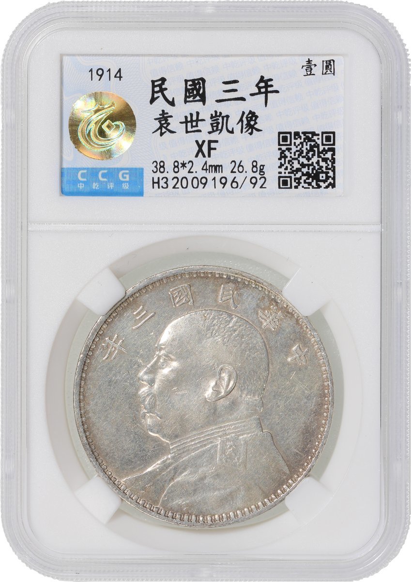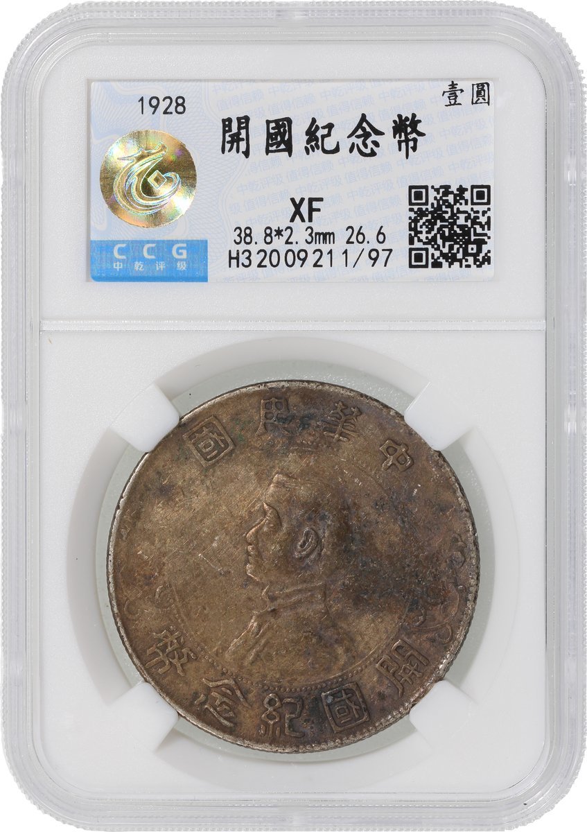 Republic of China, a pair of silver $1, 1914, Yuan Shih Kai, and ND (1928), 'Memento' dollar, both graded Zhong Qian XF, the latter with dark toning (2)
