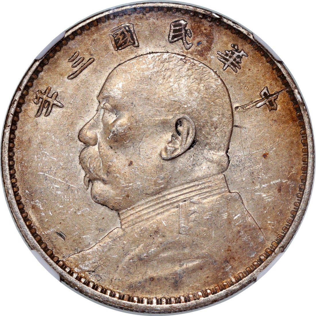民國三年袁世凱像銀元,及開國紀念銀幣,無日期,均評中乾XF,後者有深色包漿