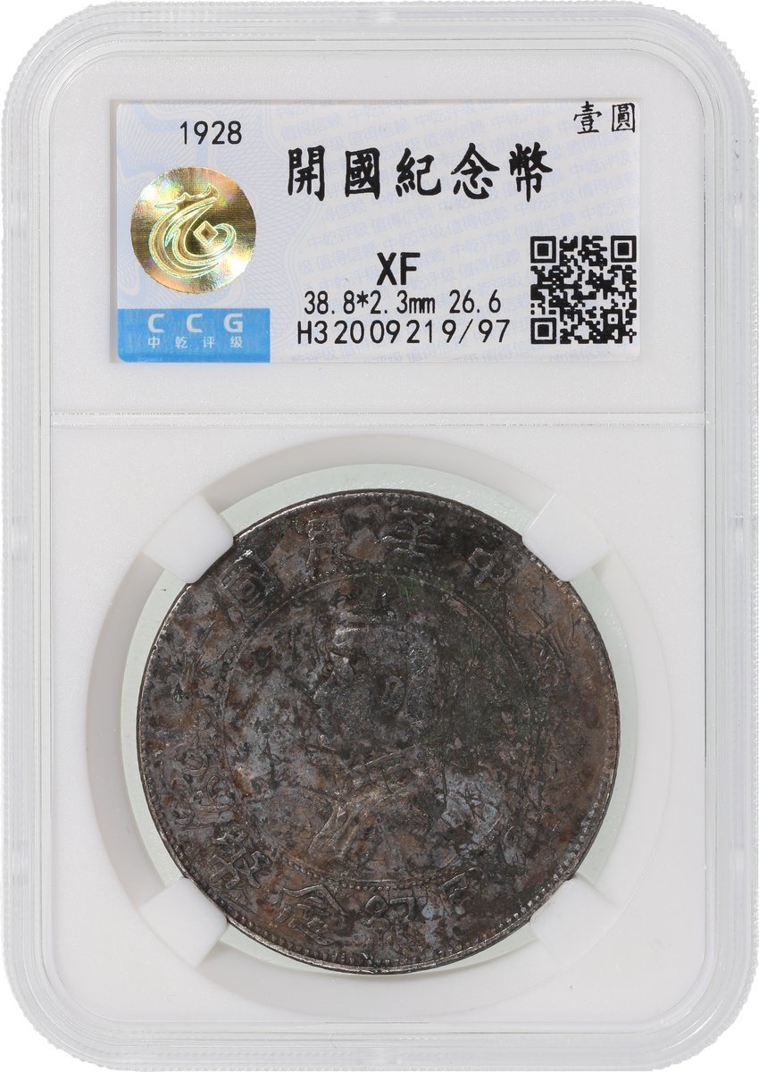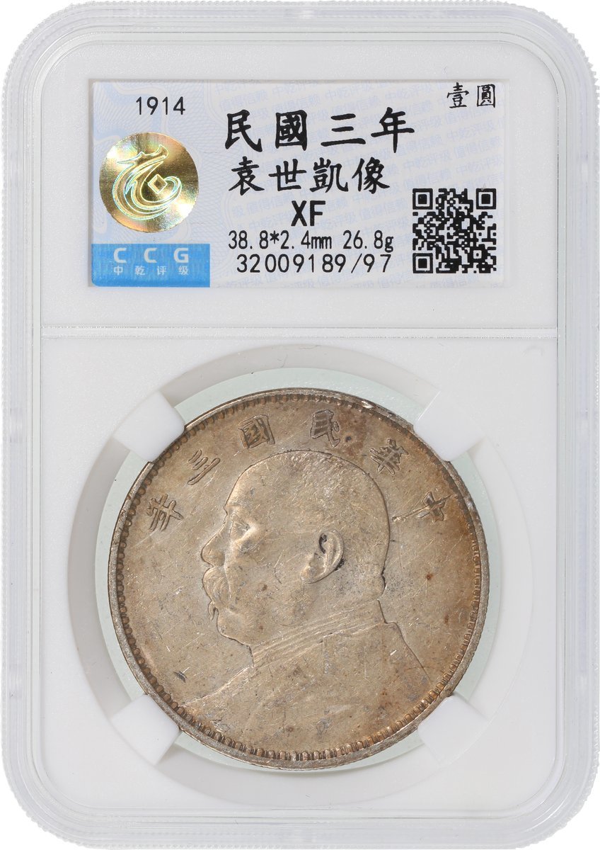 Republic of China, a pair of silver $1, 1914, Yuan Shih Kai, and ND (1928), 'Memento' dollar, both graded Zhong Qian XF, the latter with dark toning (2)
