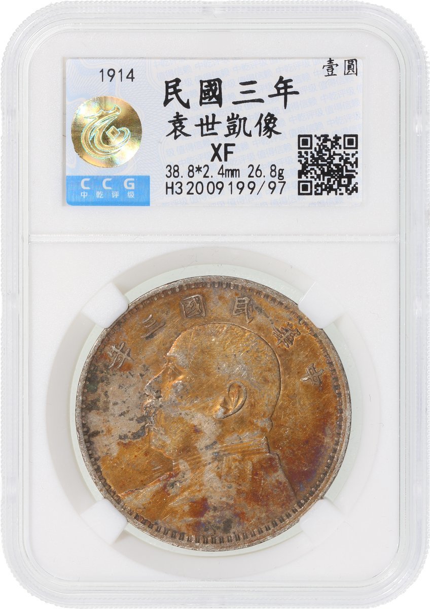 民國三年及十年袁世凱像銀元一對,均中乾XF