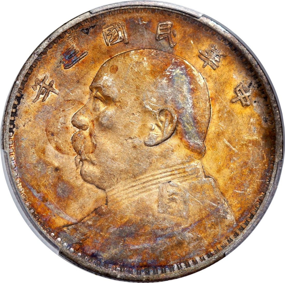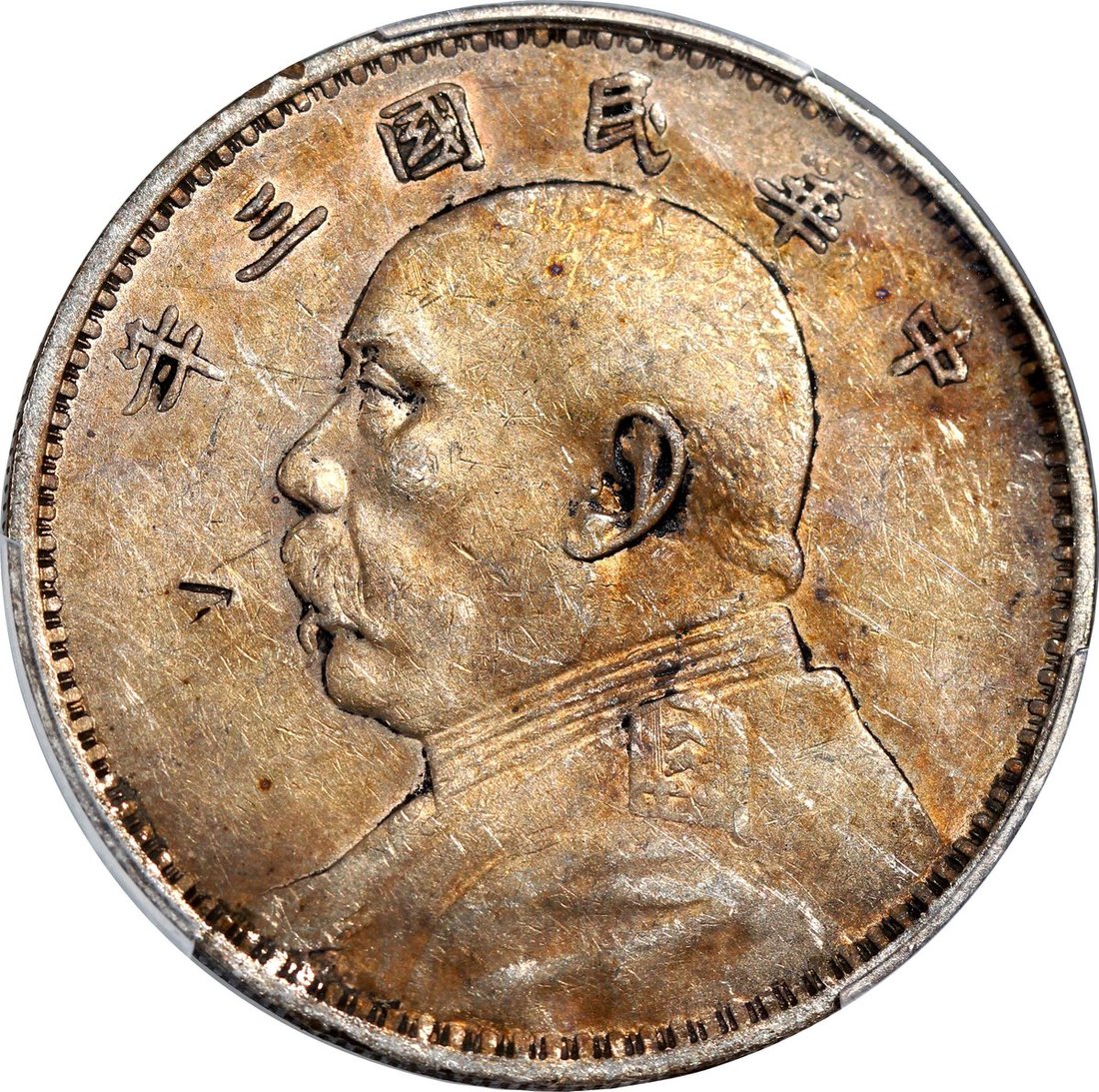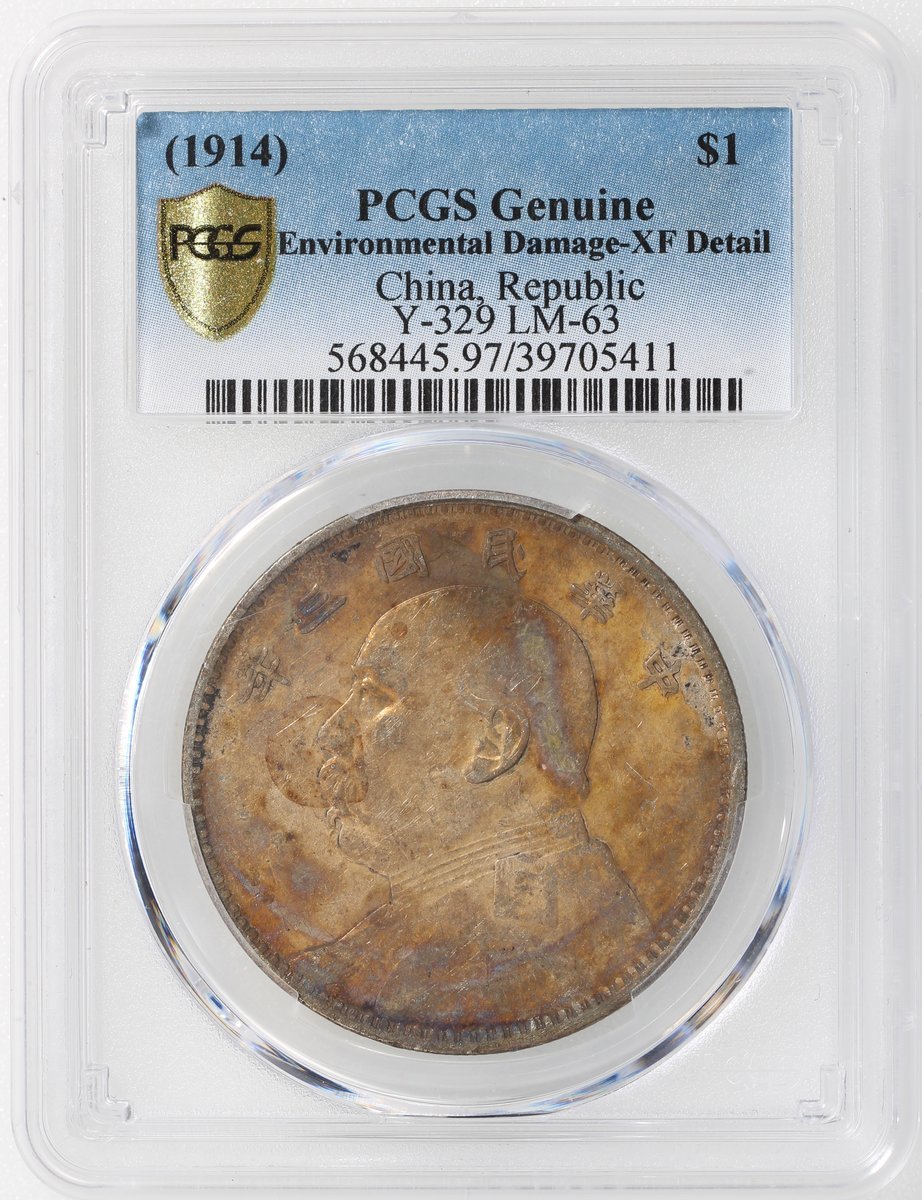 民國三年袁世凱像銀元一對,分別PCGS VF Detail (環境損害) 及 XF Detail (有戳記)