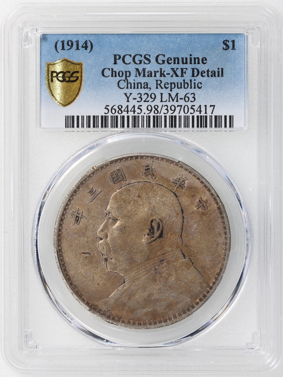 Republic of China, lot of 2 silver Fatman dollars, 1914, (Y-329, LM-63), PCGS XF Detail (Environmental Damage) and XF Detail (Chopmark), 2 coins