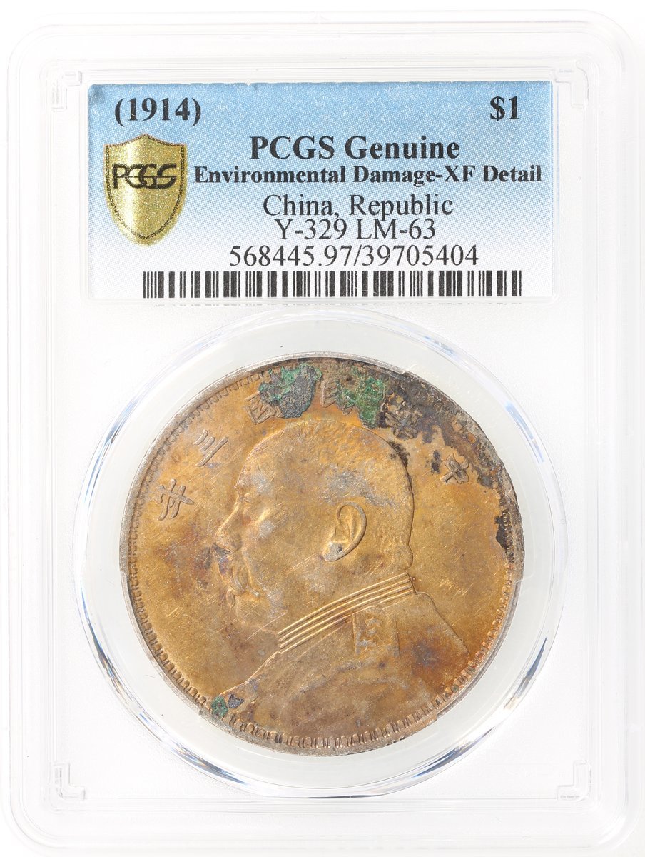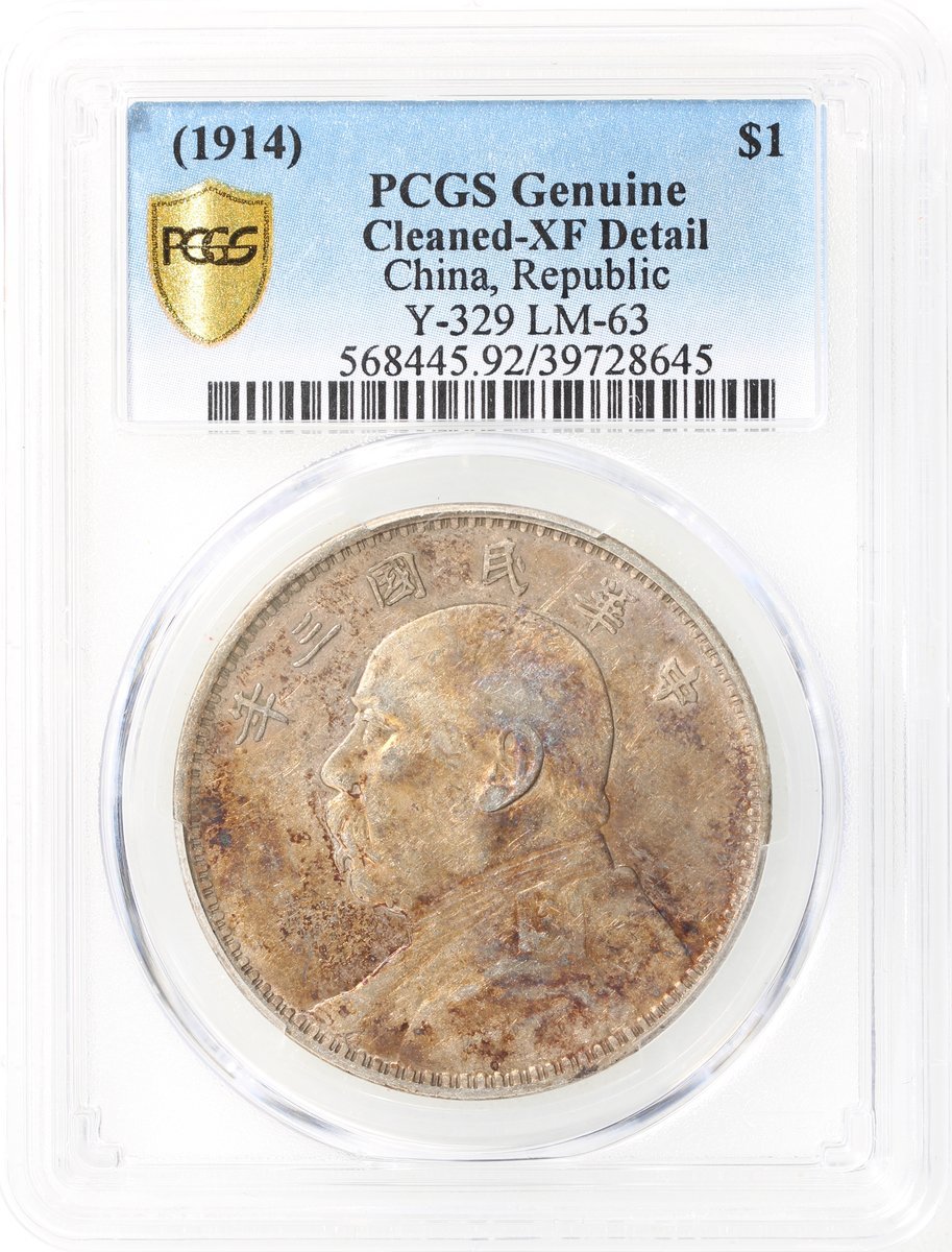 Republic of China, lot of 2 silver Fatman dollars, 1914, (Y-329, LM-63), PCGS XF Detail (Cleaned) and XF Detail (Environmental Damage), 2 coins