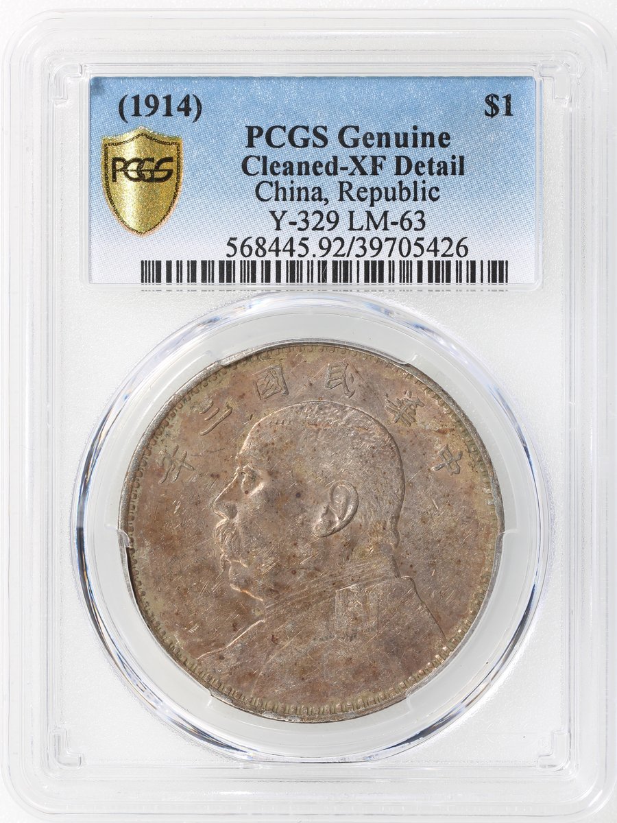 Republic of China, lot of 2 silver Fatman dollars, 1914, (Y-329, LM-63), both PCGS XF Detail (Cleaned), 2 coins