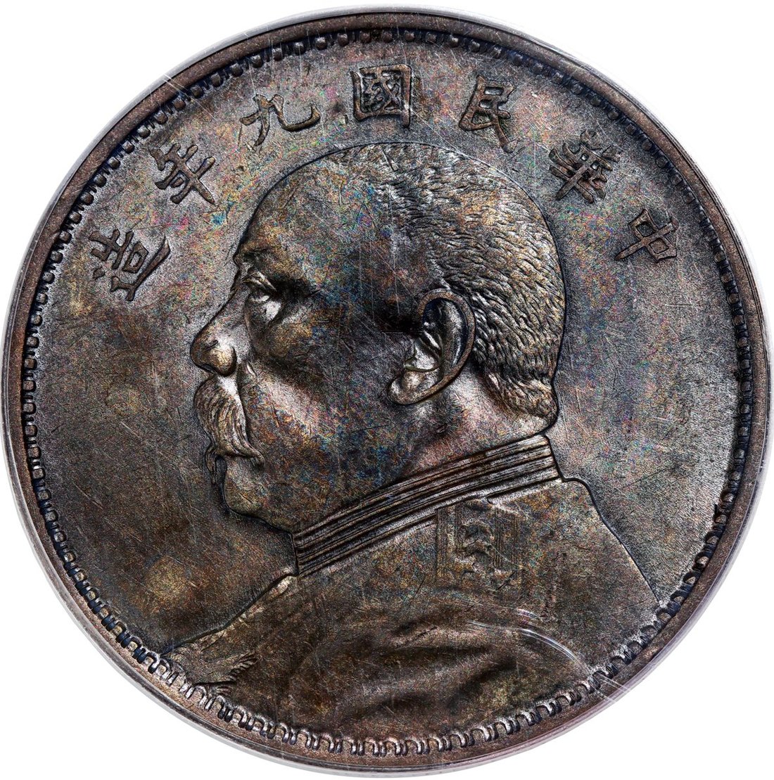 China, Republic, silver $1, Year 9(1920), Yuan Shih Kai dollar, fine hairlines variant, dark toned, GBCA AU53.