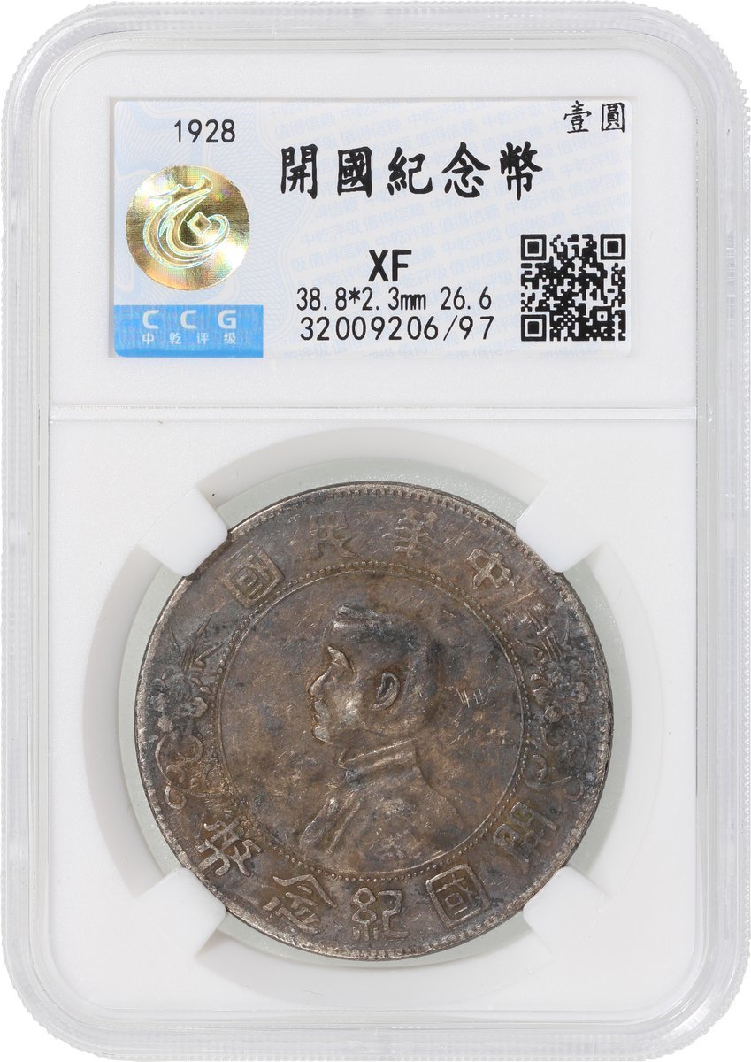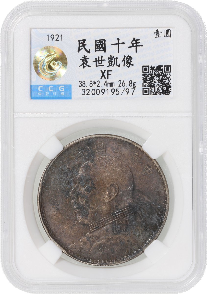 民國十年袁世凱像銀元,及開國紀念銀幣各1枚,均評中乾XF,深色包漿