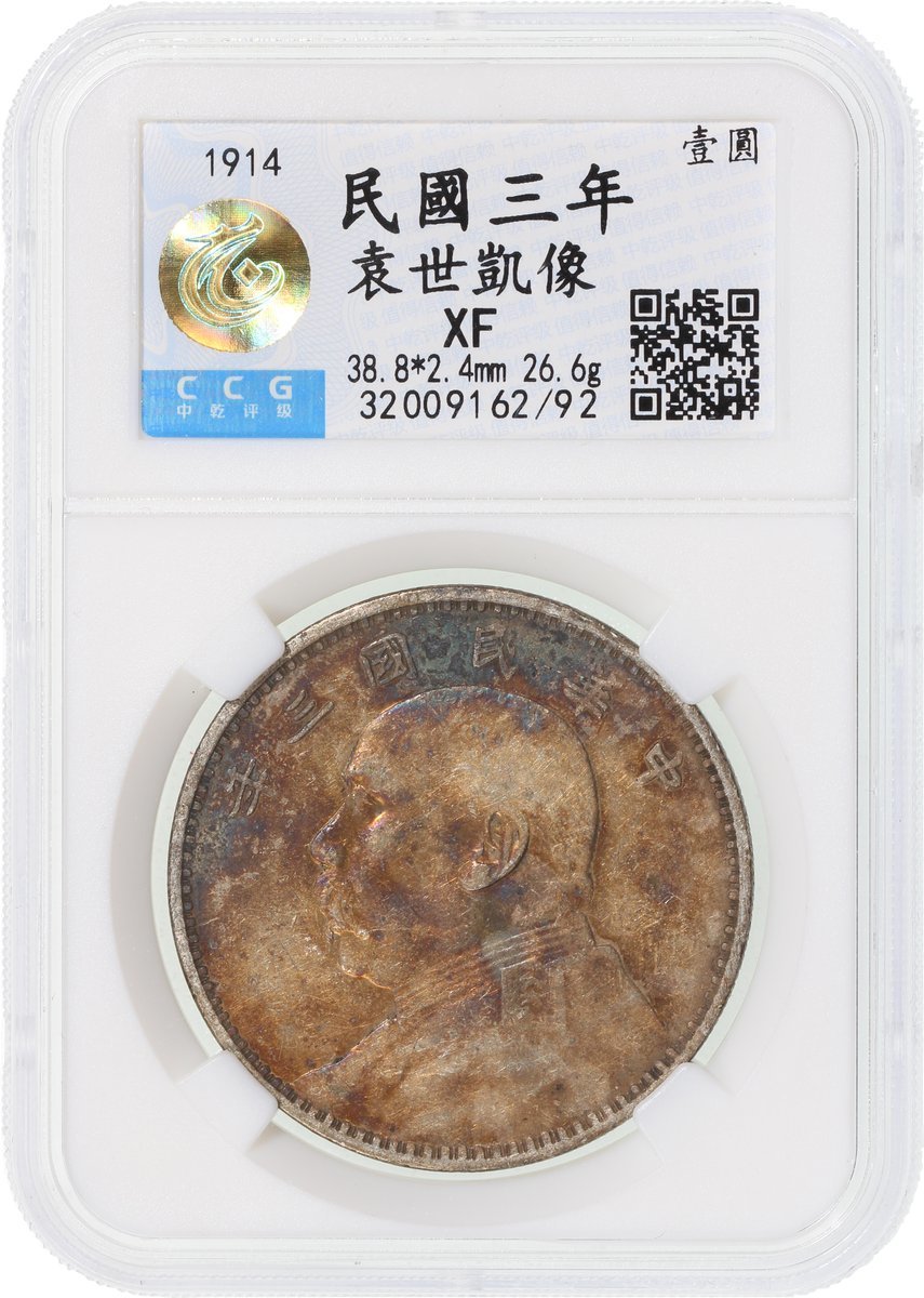 民國三年袁世凱像銀元,及開國紀念銀幣,無日期,均評中乾XF,有包漿