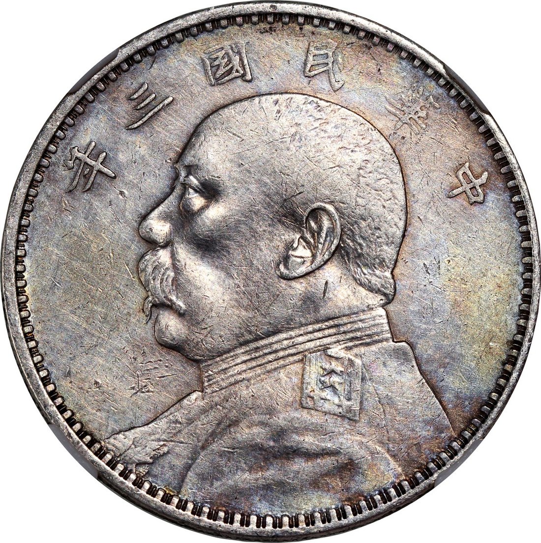 民國三年袁世凱像銀元,及開國紀念銀幣,無日期,均評中乾XF,後者有深色包漿
