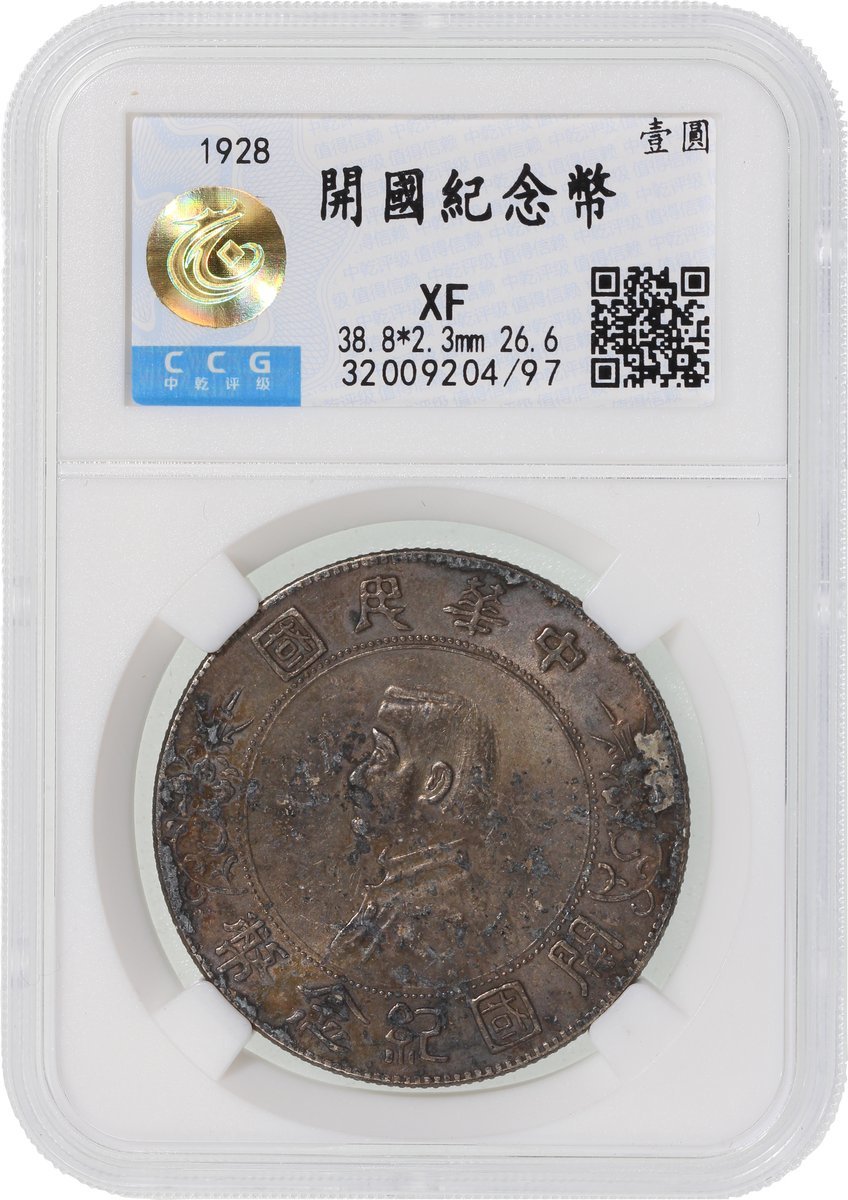 Republic of China, a pair of silver $1, 1914, Yuan Shih Kai, and ND (1928), 'Memento' dollar, both graded Zhong Qian XF, the latter with dark toning (2)