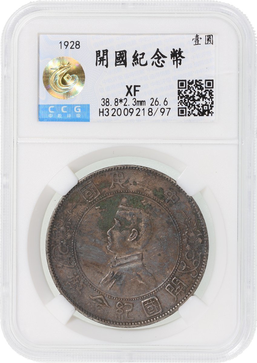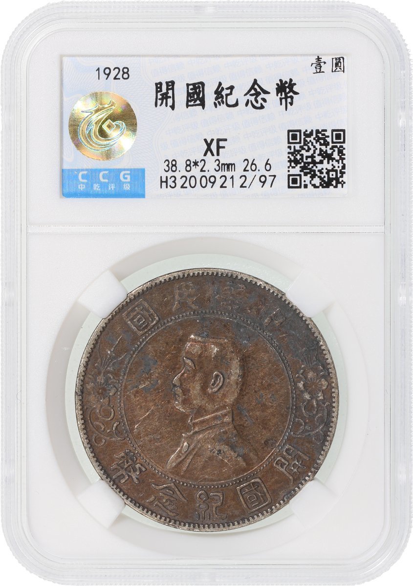 Republic of China, a pair of silver $1, ND (1928), 'Memento' dollar, both graded Zhong Qian XF, dark toning (2)