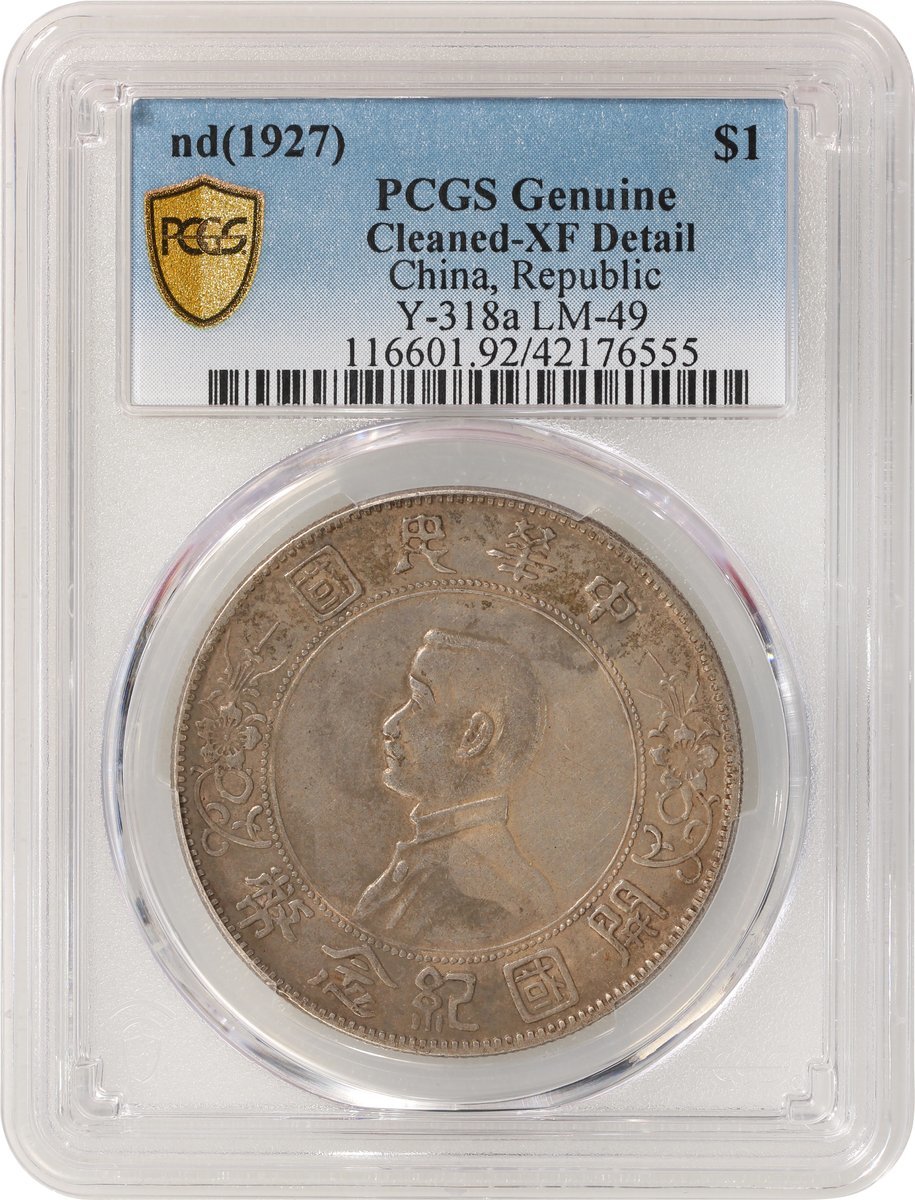 Republic of China, silver Memento dollar, 1927, (Y-318a, LM-49), PCGS XF Detail (Cleaned)