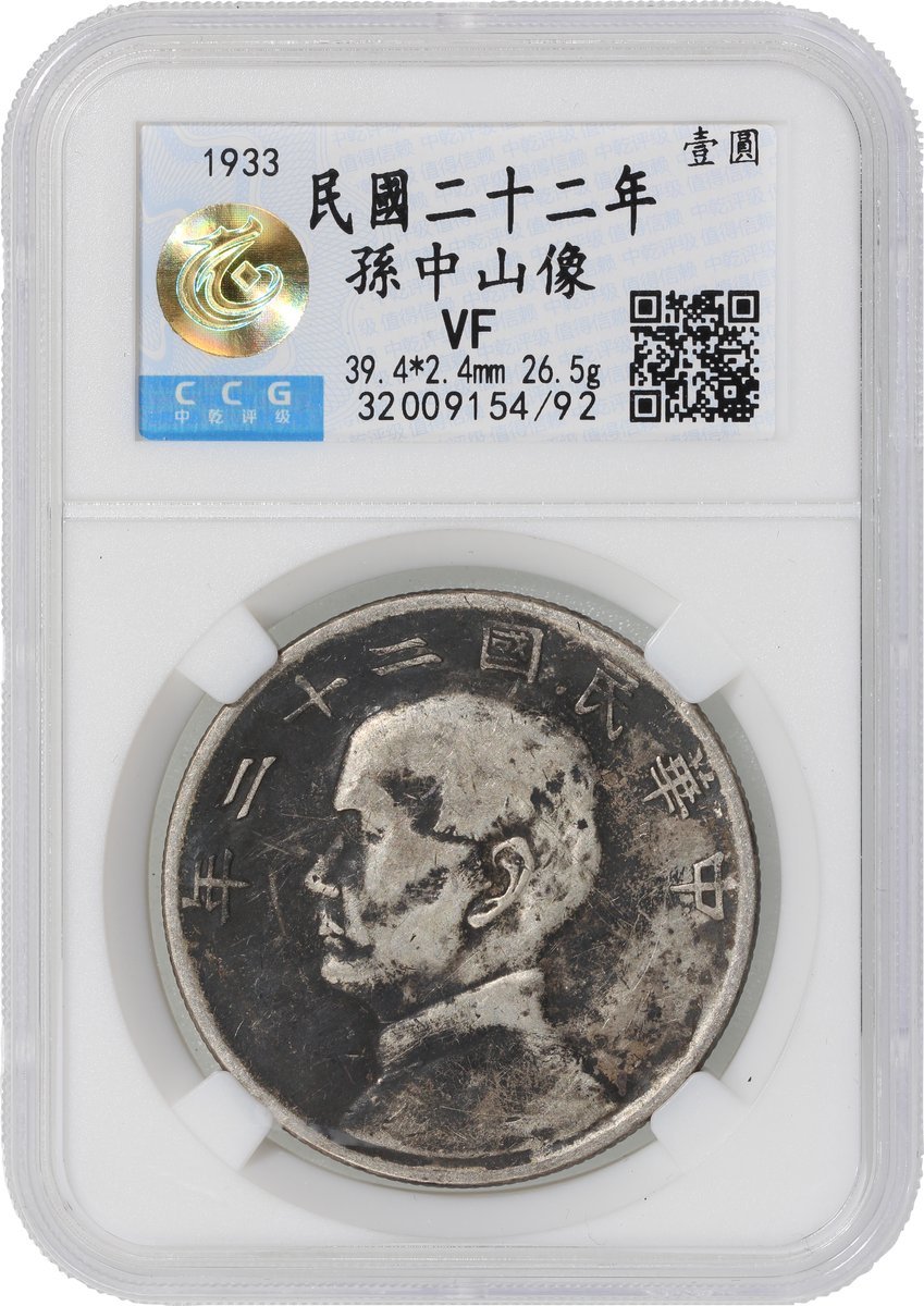Republic of China, silver $1, 1933, 'Junk' dollar, Zhong Qian VF