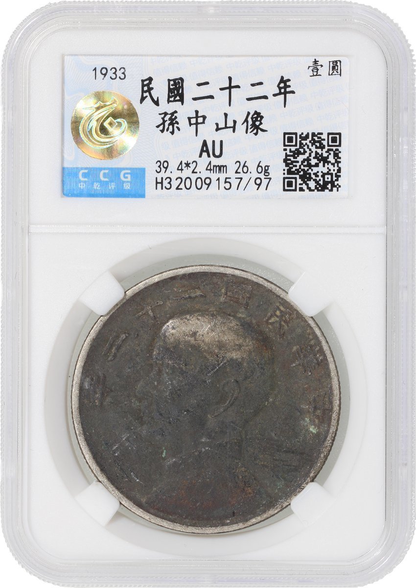 Republic of China, silver $1, 1933, 'Junk' dollar, Zhong Qian AU