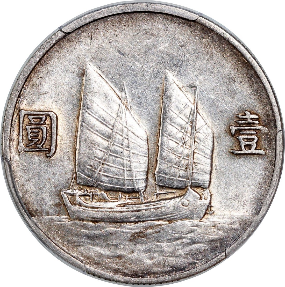民國二十二年孫中山像帆船壹圓銀幣,PCGS AU Detail,有清洗