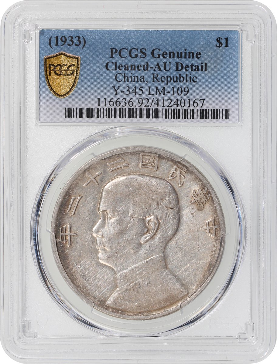 China, Republic, silver $1, Year 22(1933), Junk dollar, (LM-109), PCGS AU detail, cleaned.