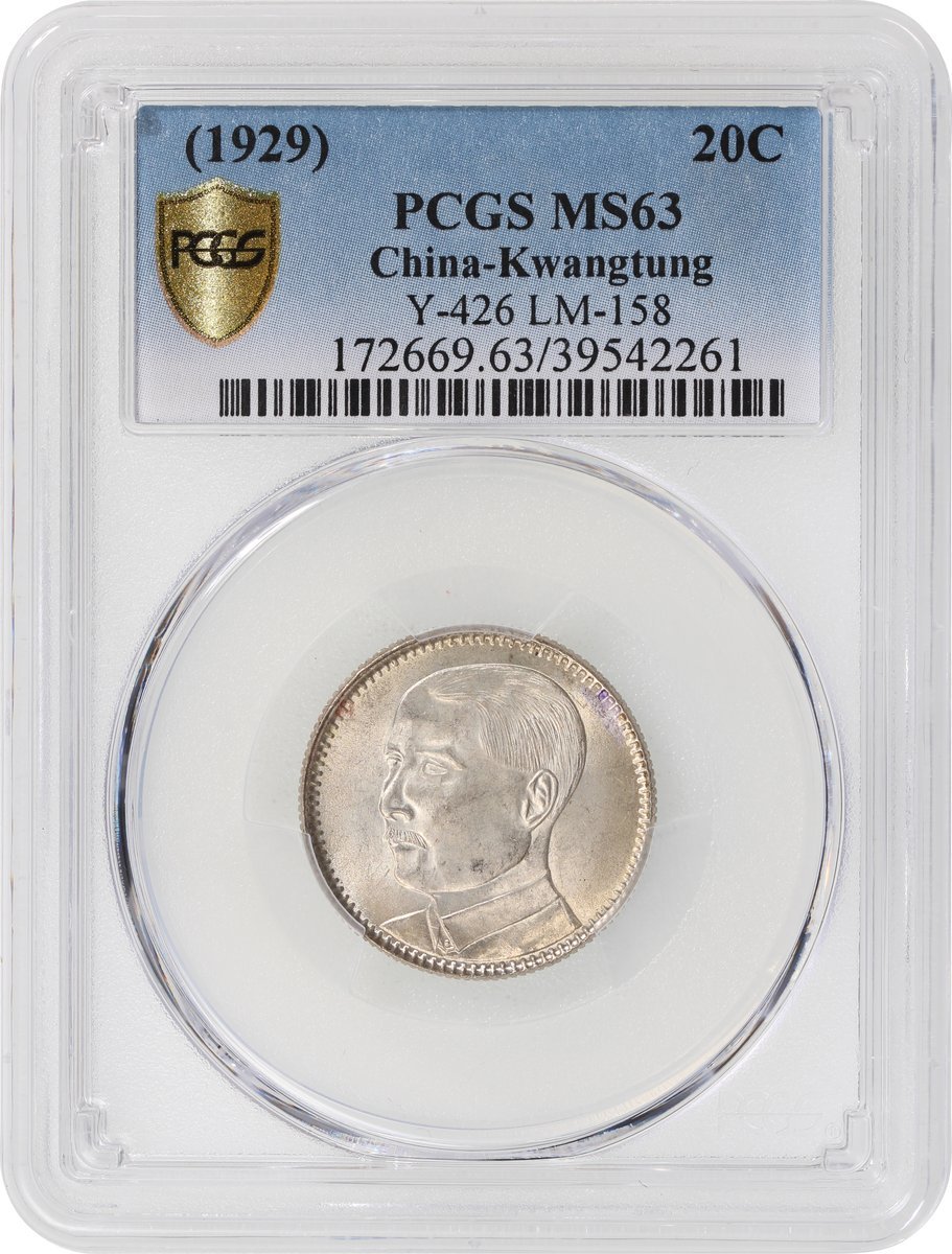 Kwantung Province, silver 20 cents, 1929, (Y-426, LM-158), PCGS MS 63