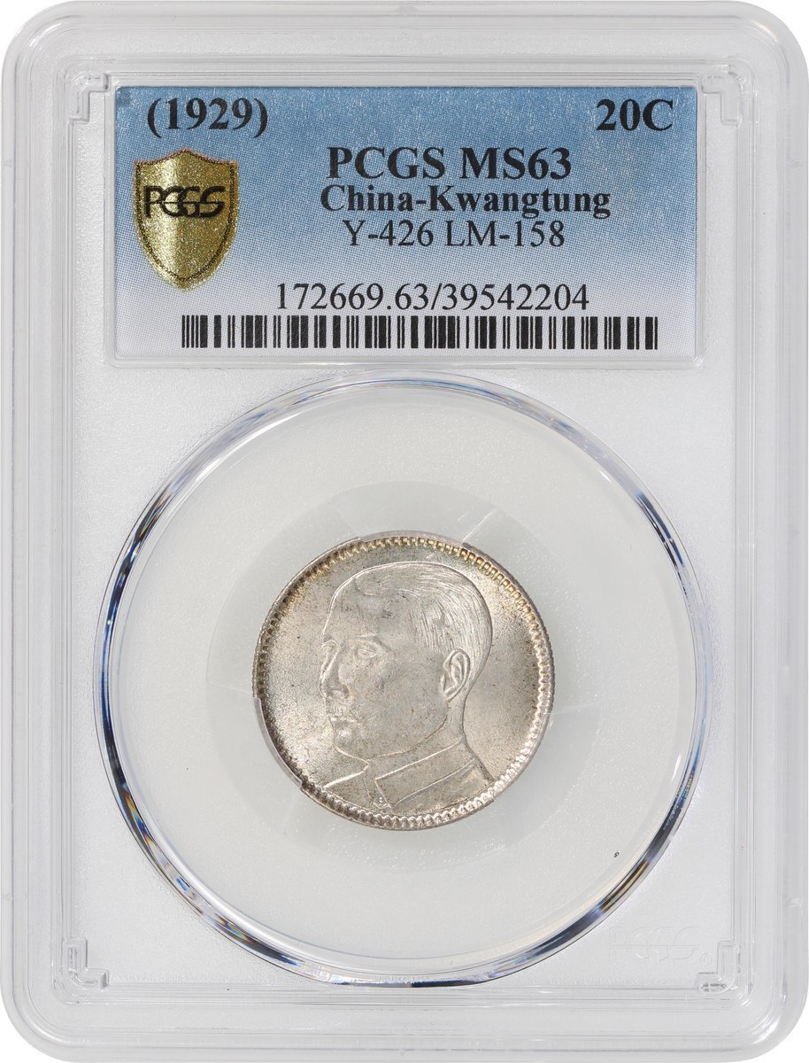 Republic of China, silver 20 cents, 1929, (Y-426, LM-158), PCGS MS 63