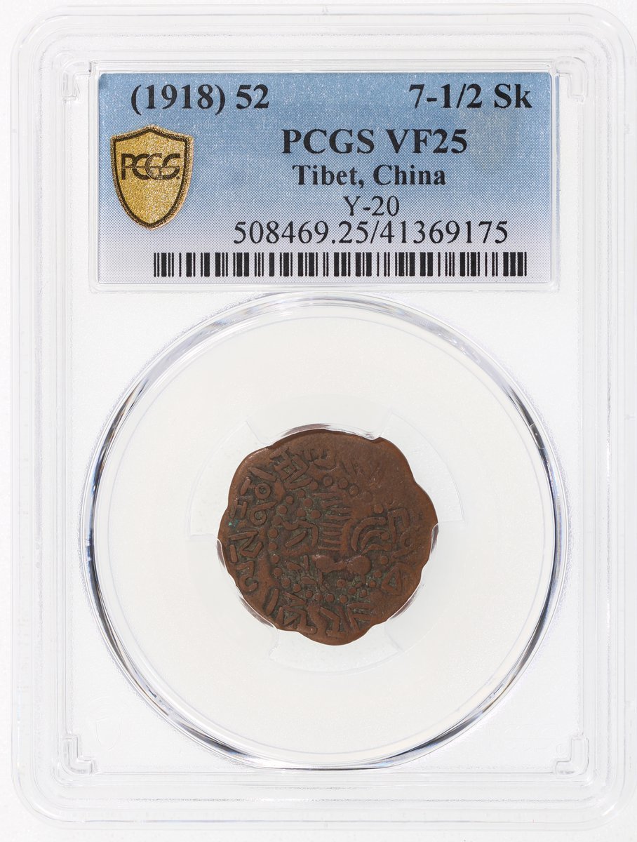 Tibet, copper 7 1/2 skar, (1918), (Y-20), PCGS VF 25.