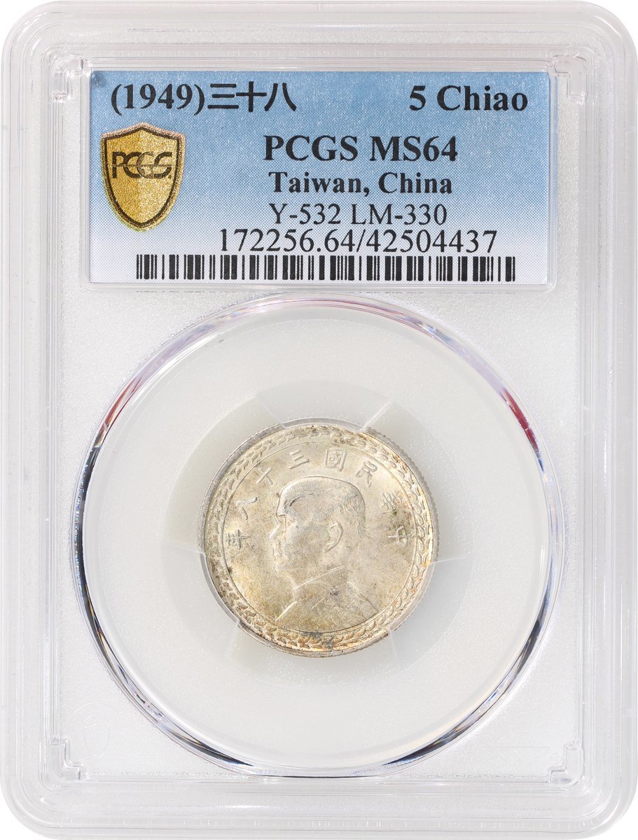 Taiwan, silver 5 chiao, 1949, (Y-532, LM-330), PCGS MS 64
