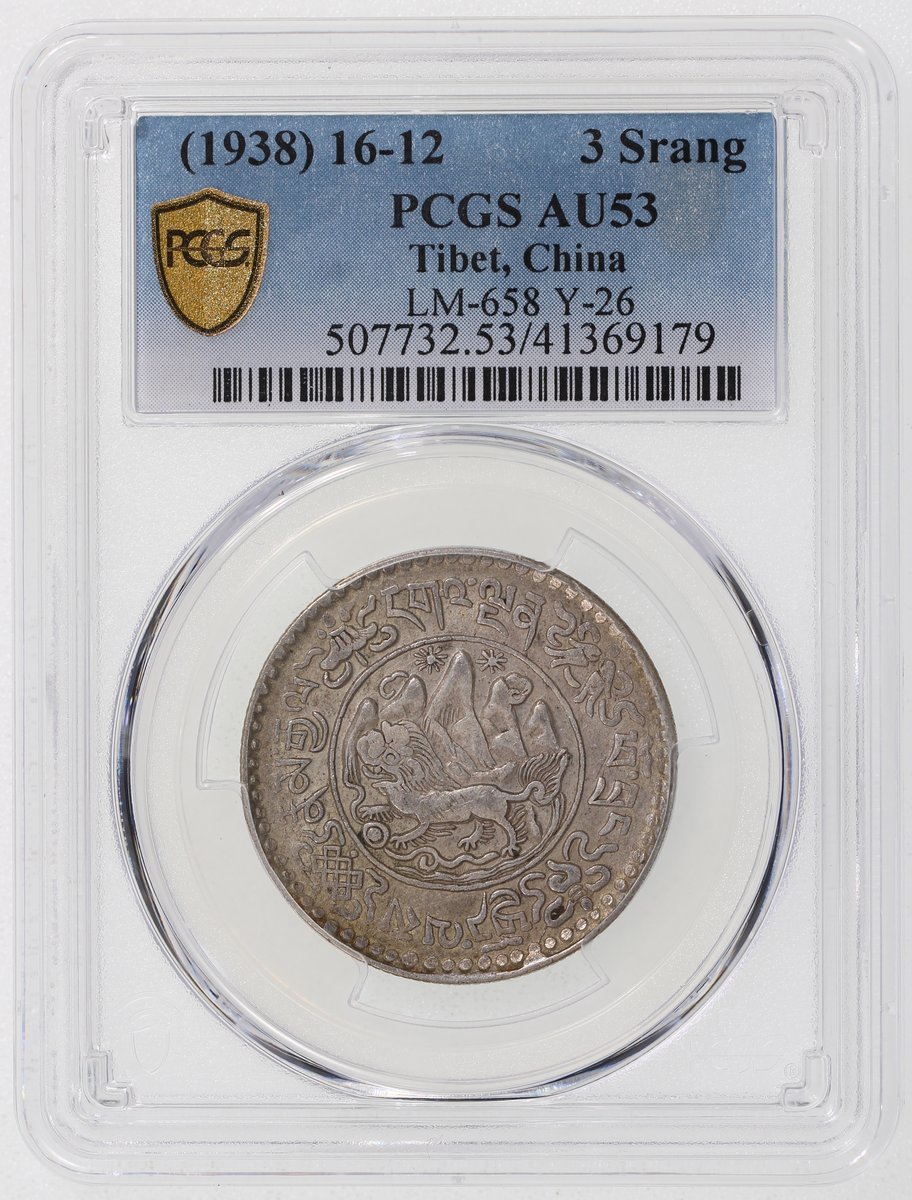 Tibet, silver 3 srang, (1938), (LM-658), PCGS AU 53.