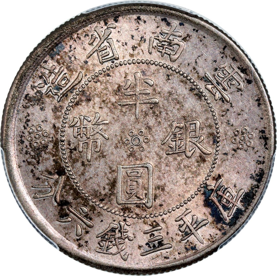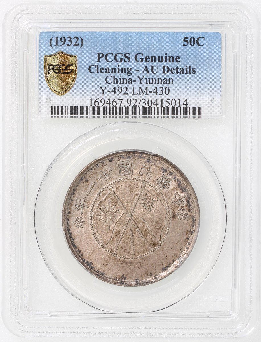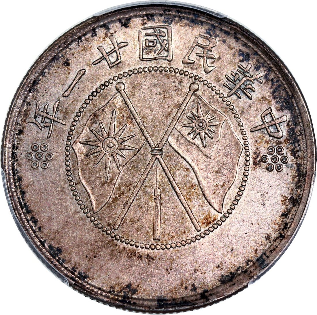 1932 中華民國廿一年雲南雙旗半圓銀幣(雙旗有點版) PCGSAU Detail