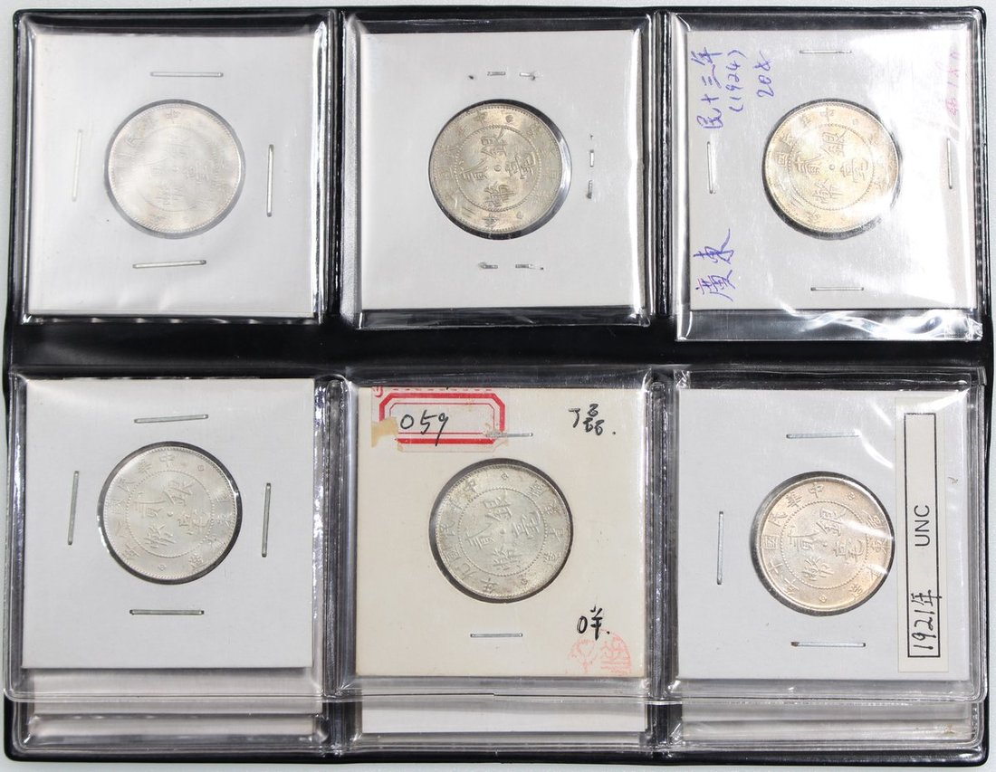 Kwangtung Province, a group of 37 silver fractionals consisting of: 10 cents, 1929 (7), 20 cents, 1912 (4), 1913 (6), 1914 (2), 1915, 1918, 1920, 1921, 1922, 1923 and also a complete set of year runs in a plastic album 1912 to 1924 (12 coins),