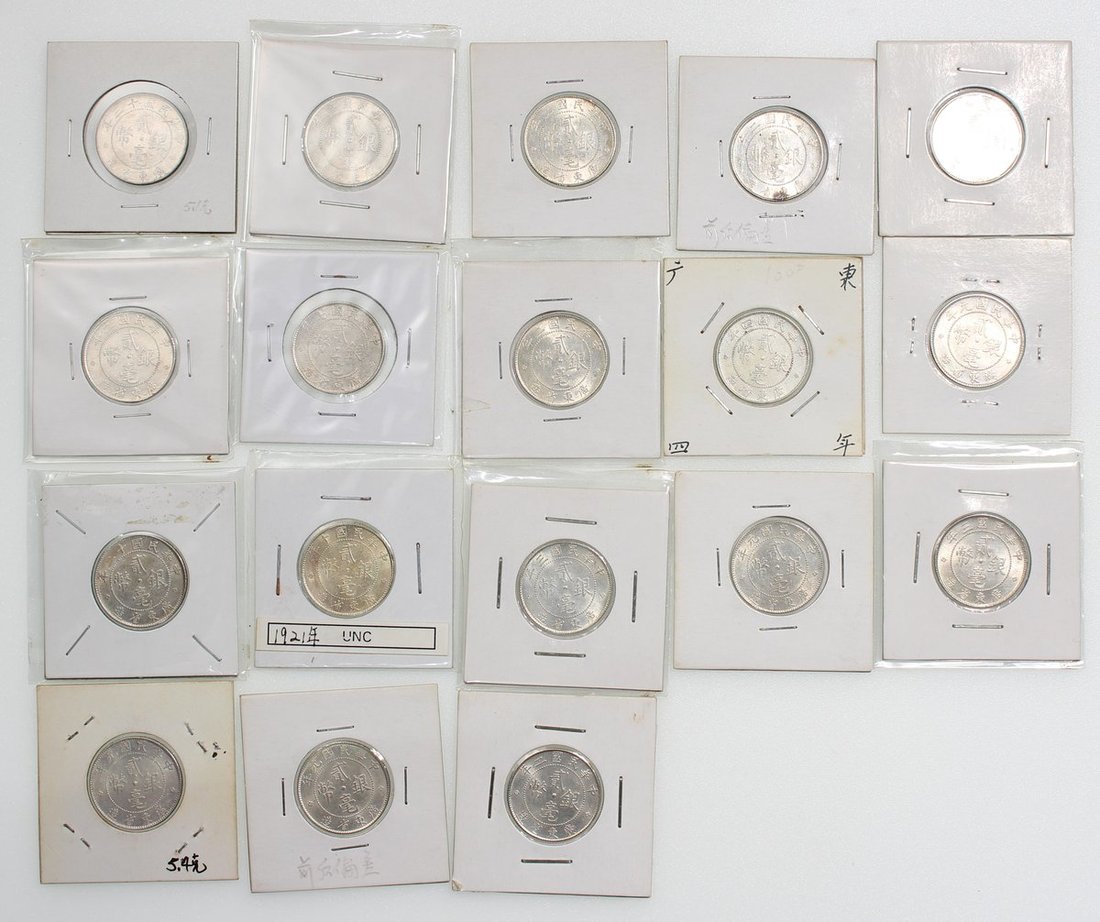 廣東省銀亳37枚,包括元年4枚,二年6枚,三年2枚,四年1枚,七,九,十,十一,十二年各1枚,全套雙亳一套12枚,十八年壹亳7枚,共37枚,AU至UNC品相