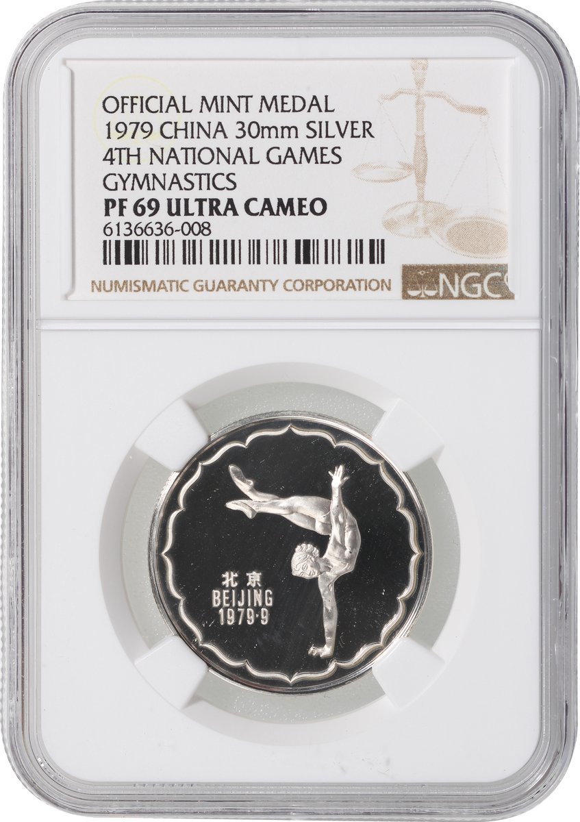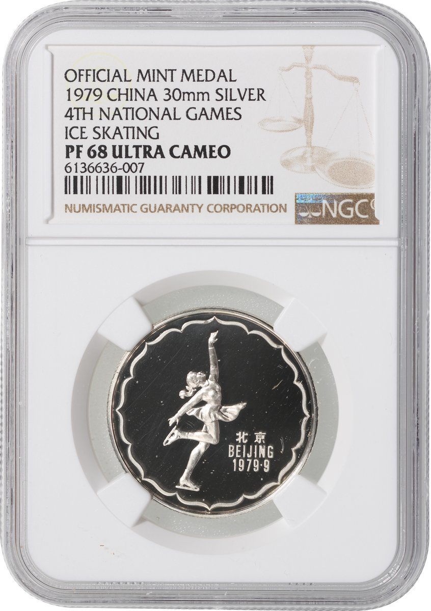 1979年第四屆中國運動會精鑄紀念銀章3枚,包括「滑冰」、「體操」及「排球」,分別評NGC PF68 Ultra Cameo, PF69 Ultra Cameo及PF69 Ultra Cameo,附原盒但沒有證書