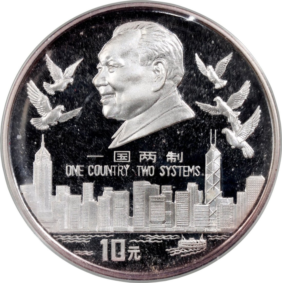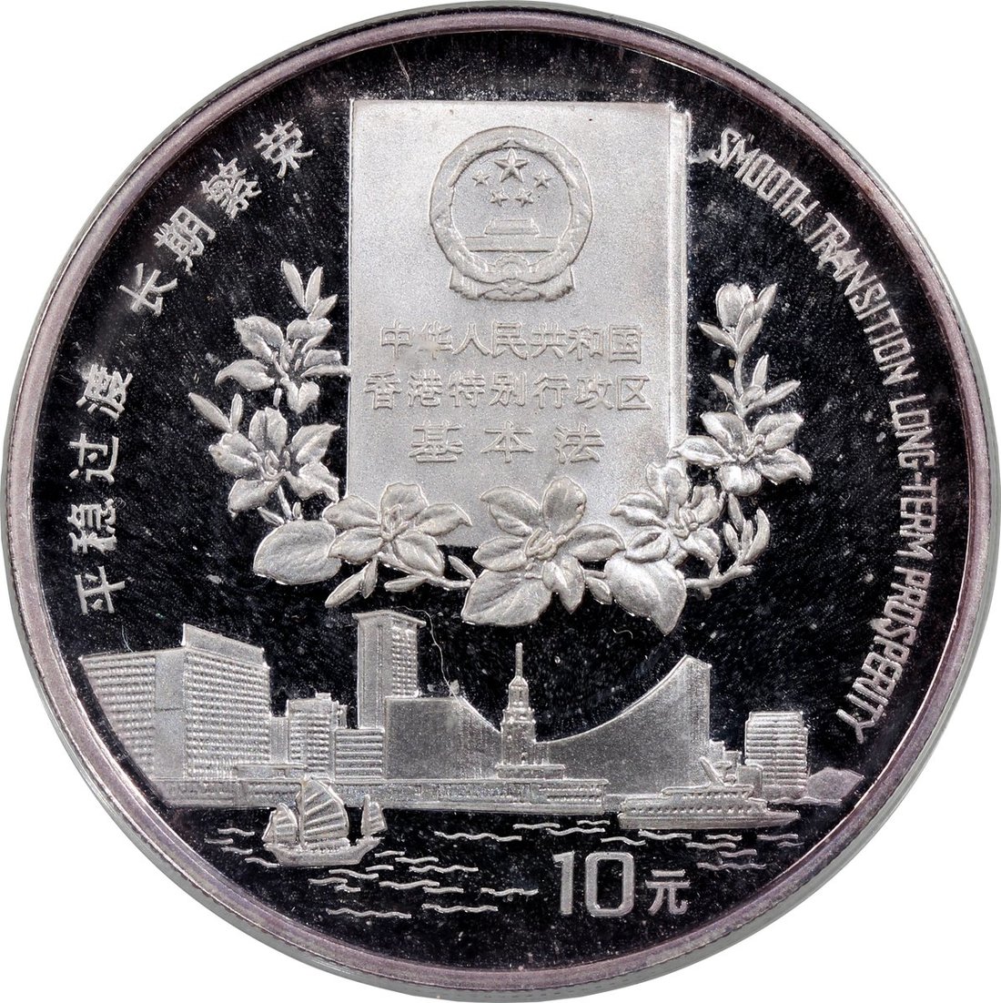 People's Republic of China, a pair of silver proof 10 yuan, 1995 and 1996, commemorative issue for the Handover of Hong Kong, 'One Country Two Systems' and 'Smooth Transition, Long-Term Prosperity', each weighs 1oz containing .999 silver,