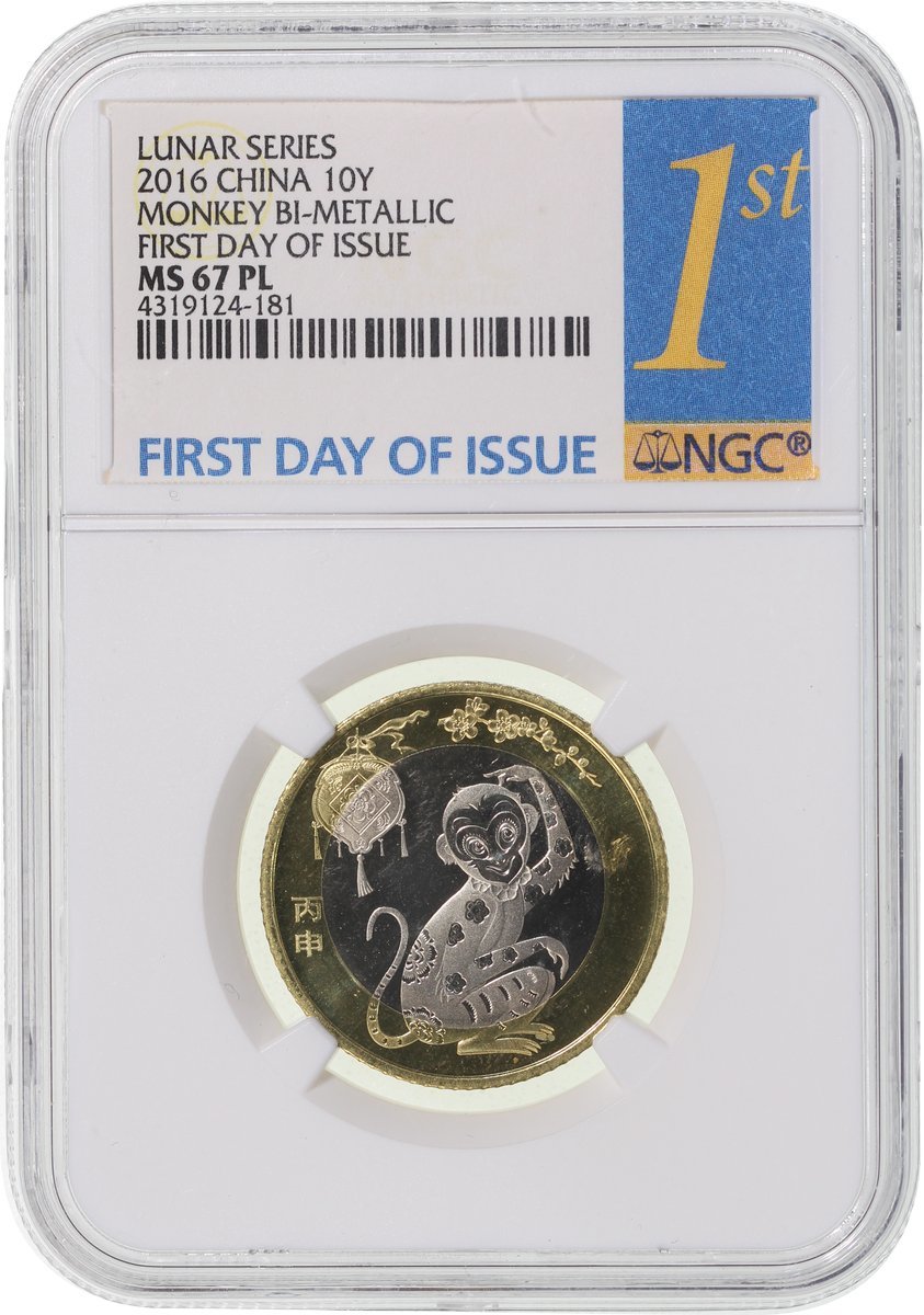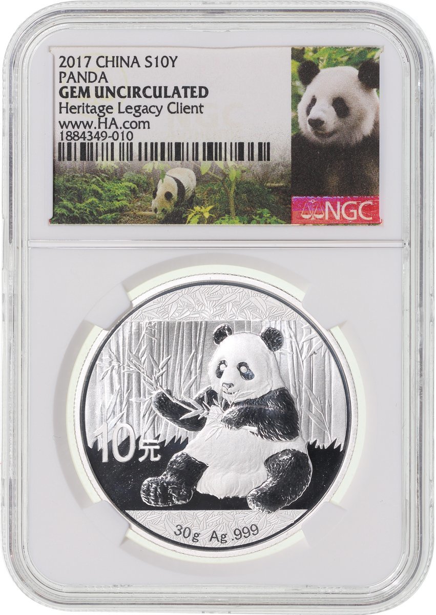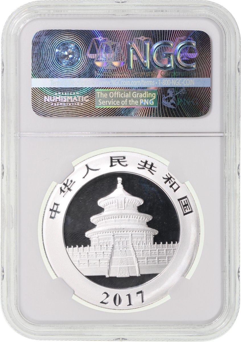 中國紀念幣3枚一組, 包括2016及2017年熊貓10元銀幣,以及2016年猴年雙金屬10元,首二枚評NGC MS69,第三枚評MS67PL