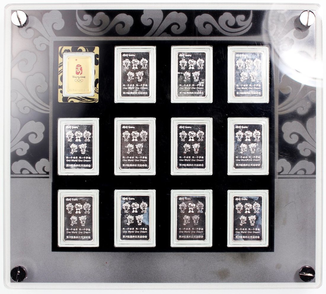 People's Republic of China, a set of 12x commemorative medallions for the Beijing Olympics, 2008, each with a Chinese zodiac at obverse, 1x gold and 11x silver proof, each weighs 10g and are of .999 fineness, in total 10g (0.3oz) AGW and 110g (3.5oz) ASW,