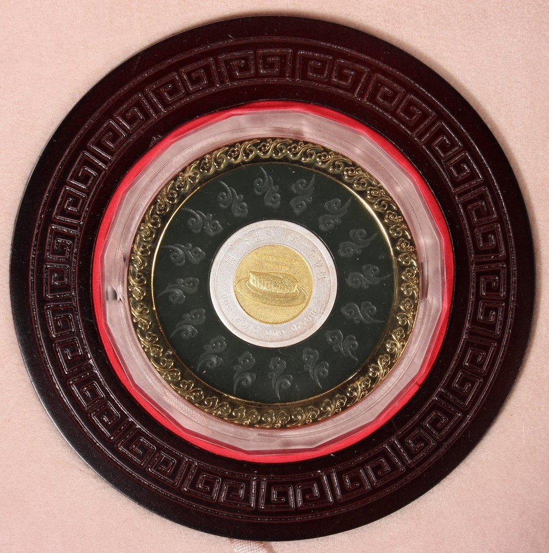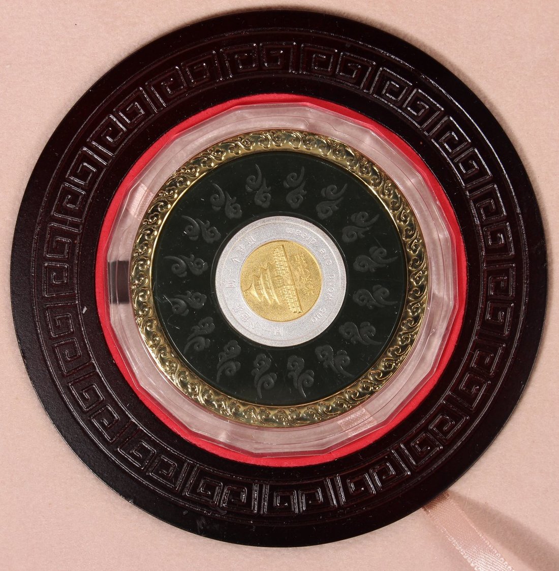 2008年北京奧運金玉紀念章一套3枚,每枚含2.9克金及38克銀,純度均達.999,總含金量8.7克及含銀量114克,UNC,連原包裝及證書,編號A01553,發行20008套
