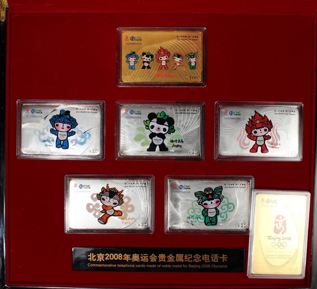 北京2008年奧運會貴金屬紀念電話卡2套,