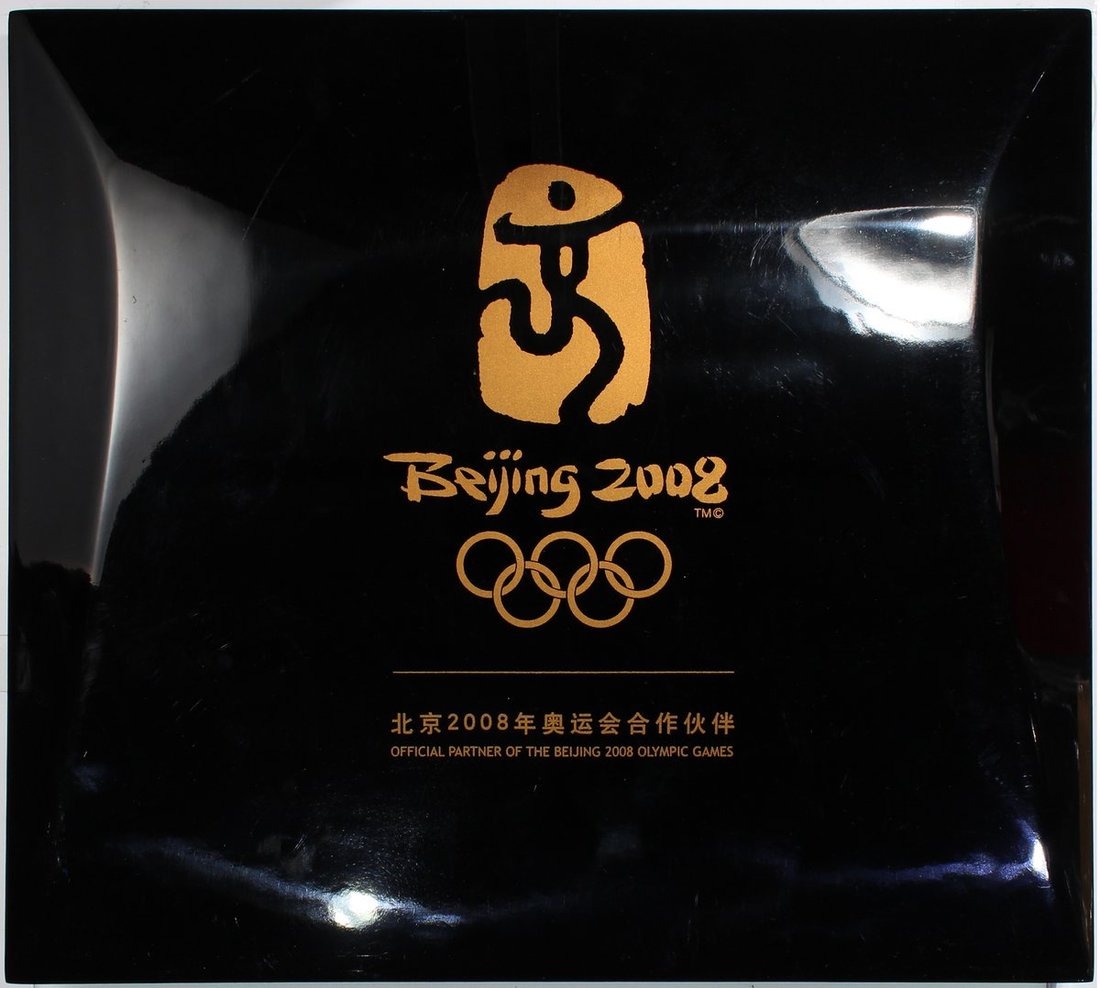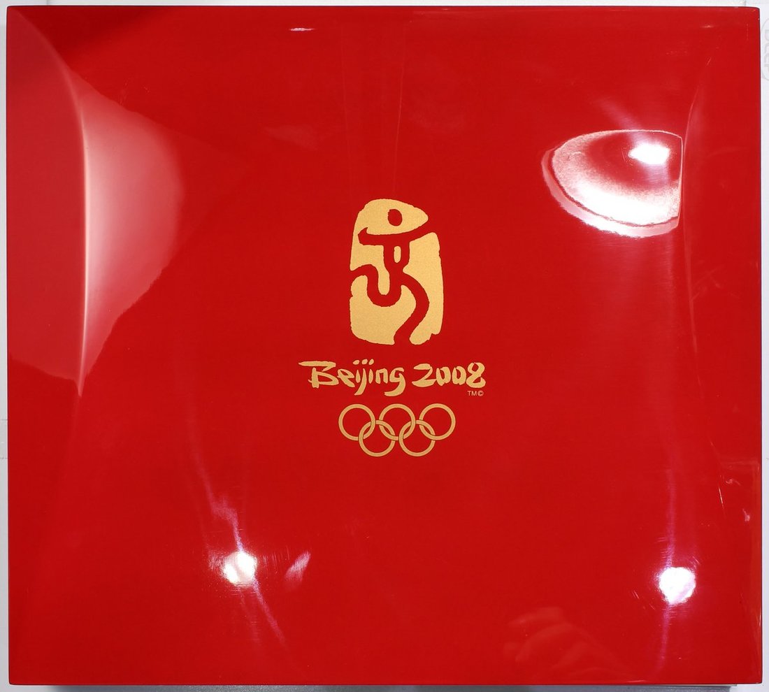 the second set of 7 containing gold 100 Yuan (1), weigh 1/3oz, silver 20 Yuan (5), weighs 1oz each, rectangular shape with colourised 'Fuwa' at obverse, also copper 10 Yuan (1), Beijing Olympics logo at obverse,
