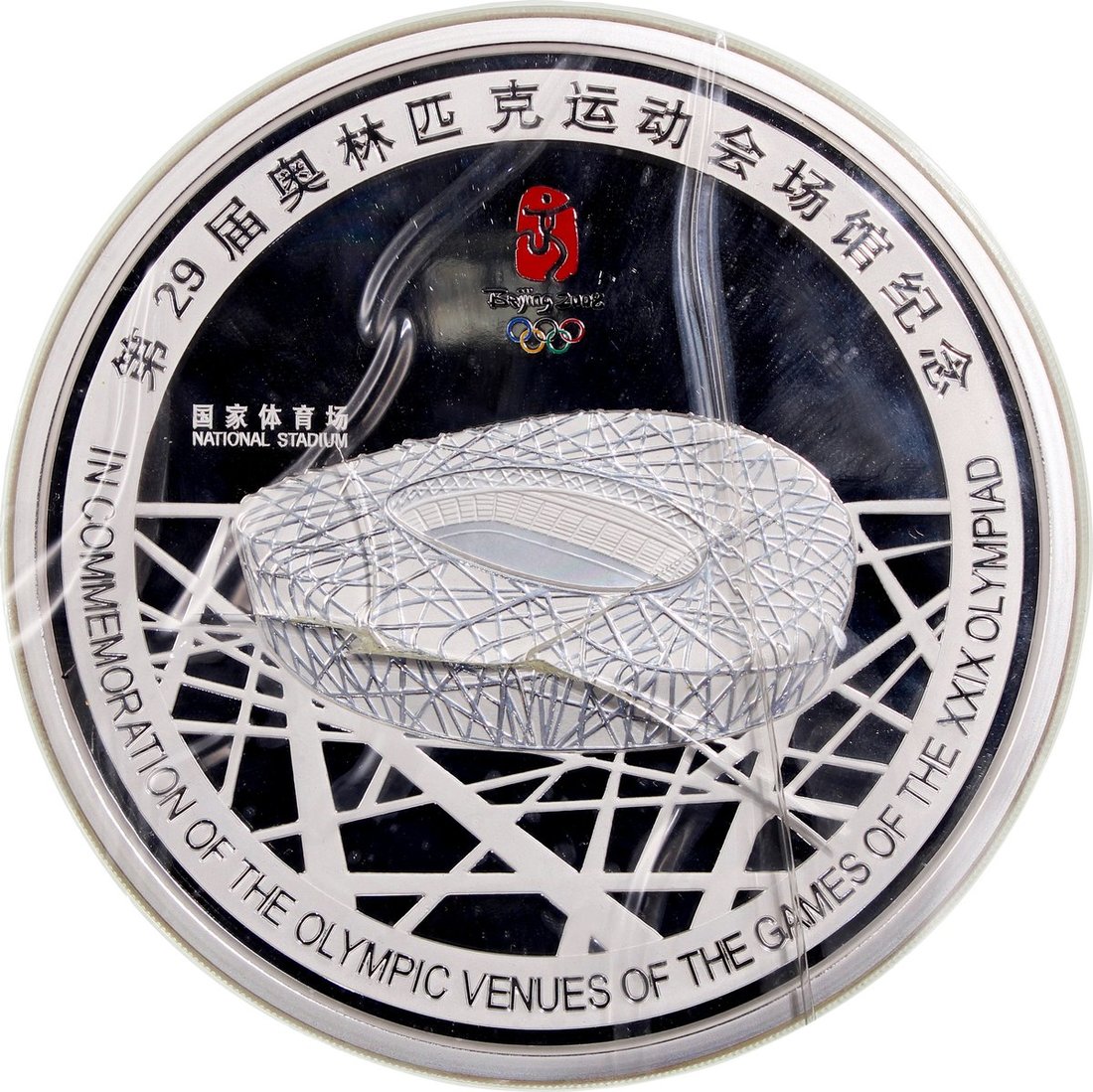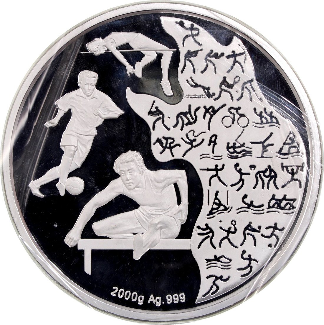 People's Republic of China, large sized silver proof commemorative medallion for the Olympic Venues of the Beijing Olympics, 2008, High Jump, Football, Hurdles and other Olympic sports at obverse, the 'Bird's Nest' Stadium at reverse, weighs 2kg containing .999 silver,