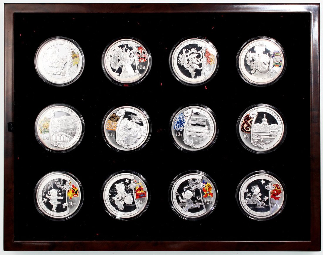 People's Republic of China, a set of 12x coloured silver proof commemorative 10 Yuan Beijing Olympics, 2008, each weighs 1oz containing .999 silver, combined ASW of 12oz,