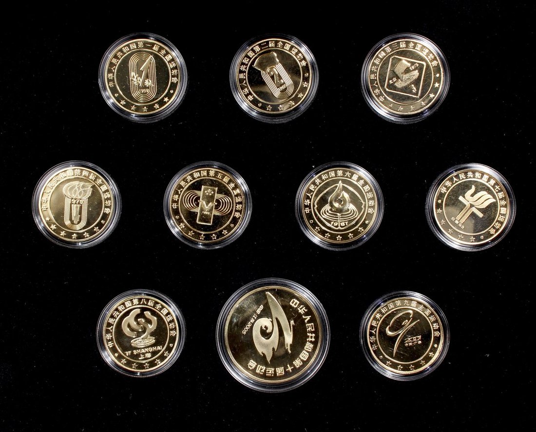 歷屆全運會紀念章大全2套,每套包括10枚鍍金銅章,