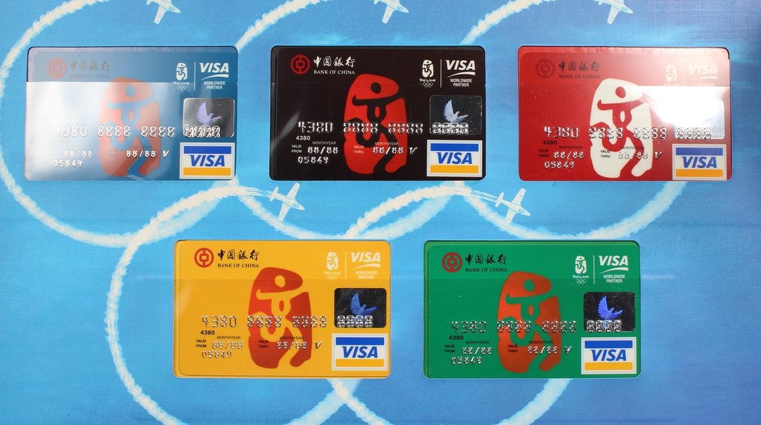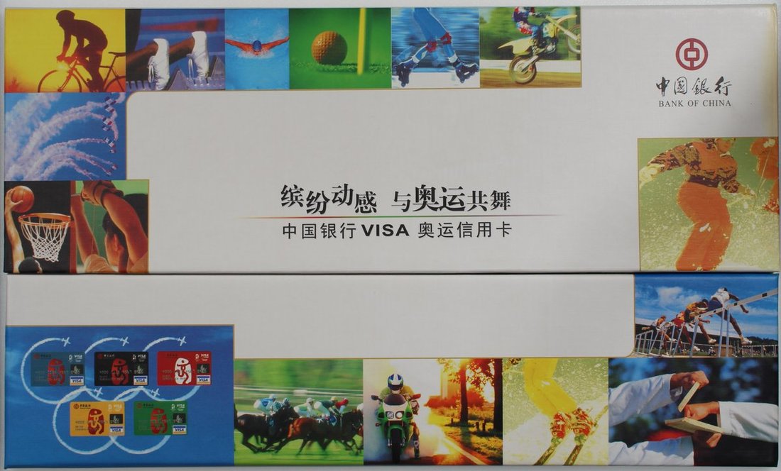 2008年中國銀行VISA奧運紀念版信用卡一組5枚,UNC,連原封套