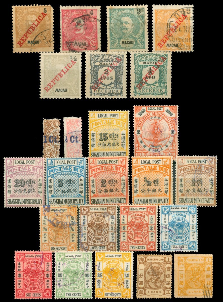 1890 a group of Shanghai Local Post stamps and a small group of Macau stamps. Please review