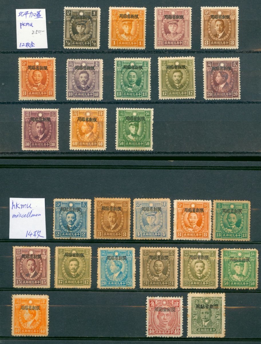 1933-42 a lot of over 190 overprinted "Limited For Use in Sinkiang Province" on Dr.Sun or Martyrs. Including Beiping overprint full set of 12, 1943 Paicheng Engr. imperf. full set of 6, Hong Kong print Martyrs full setof 14, etc. Please preview.
