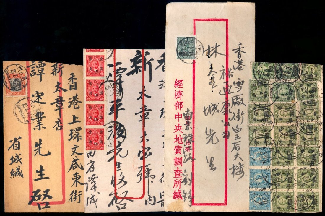 1946-49年各地寄香港實寄封12件,分別貼各版孫像加蓋國幣,金元,稅改金元等郵票,銷各地日戳,整體保存完整,品種豐富,市場價值高,請預覽